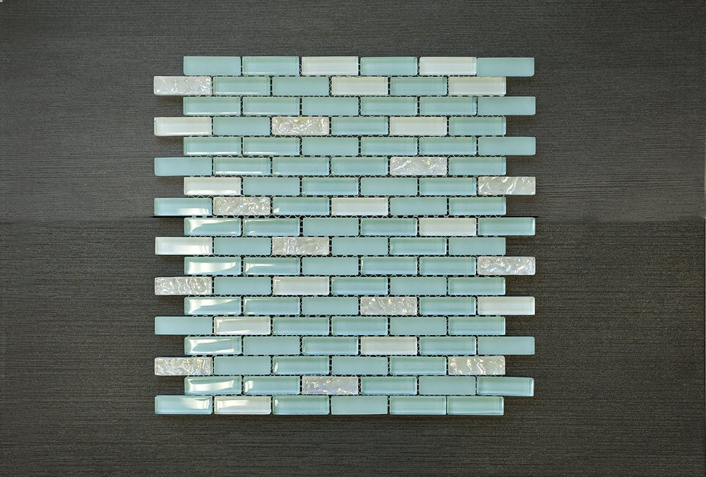 1/2 x 2 Brick Pattern Glass Tile; Color: Sky Blue & White Glass Tile