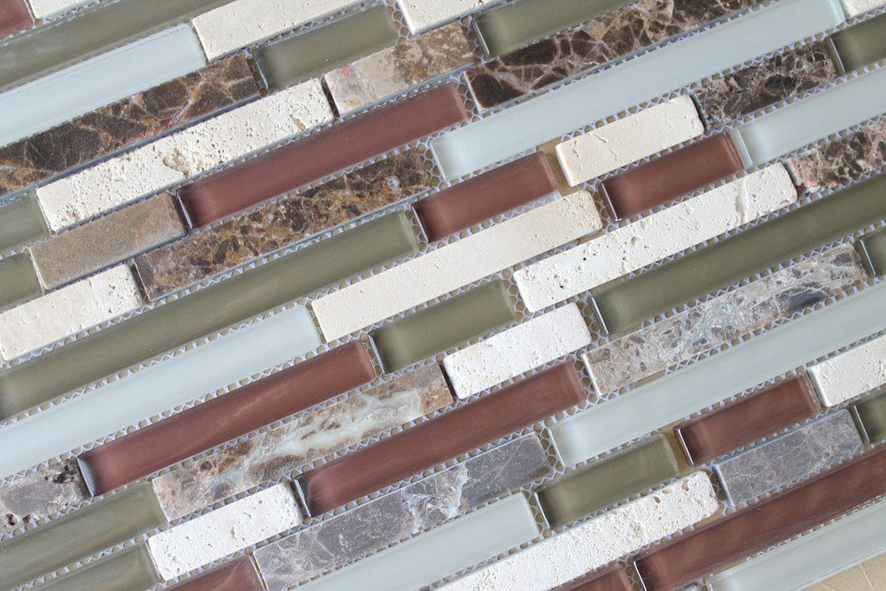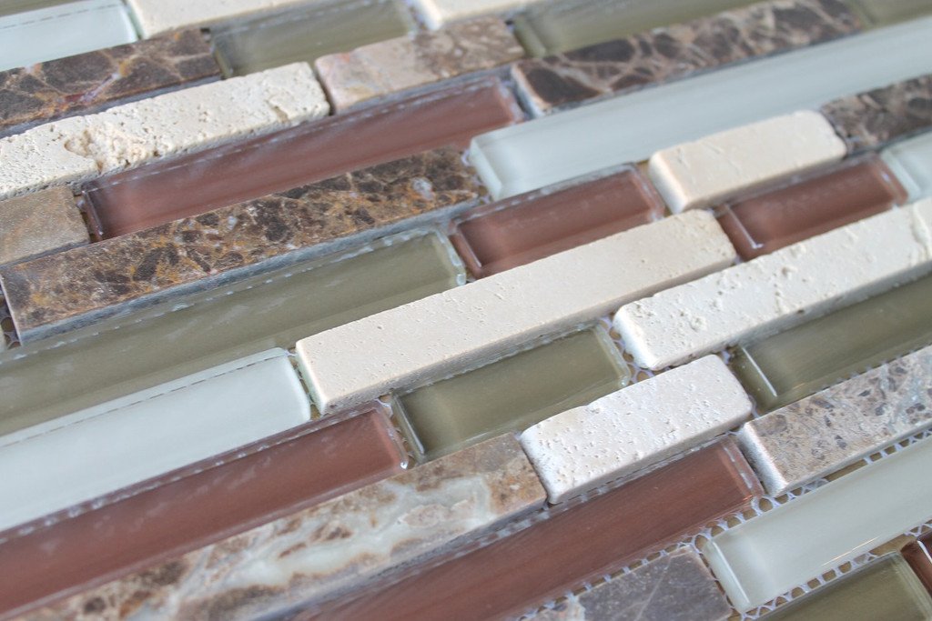 10 Sq Ft - Bliss Cappucino Stone and Glass Linear Mosaic Tiles- bathroom walls/ kitchen backsplash
