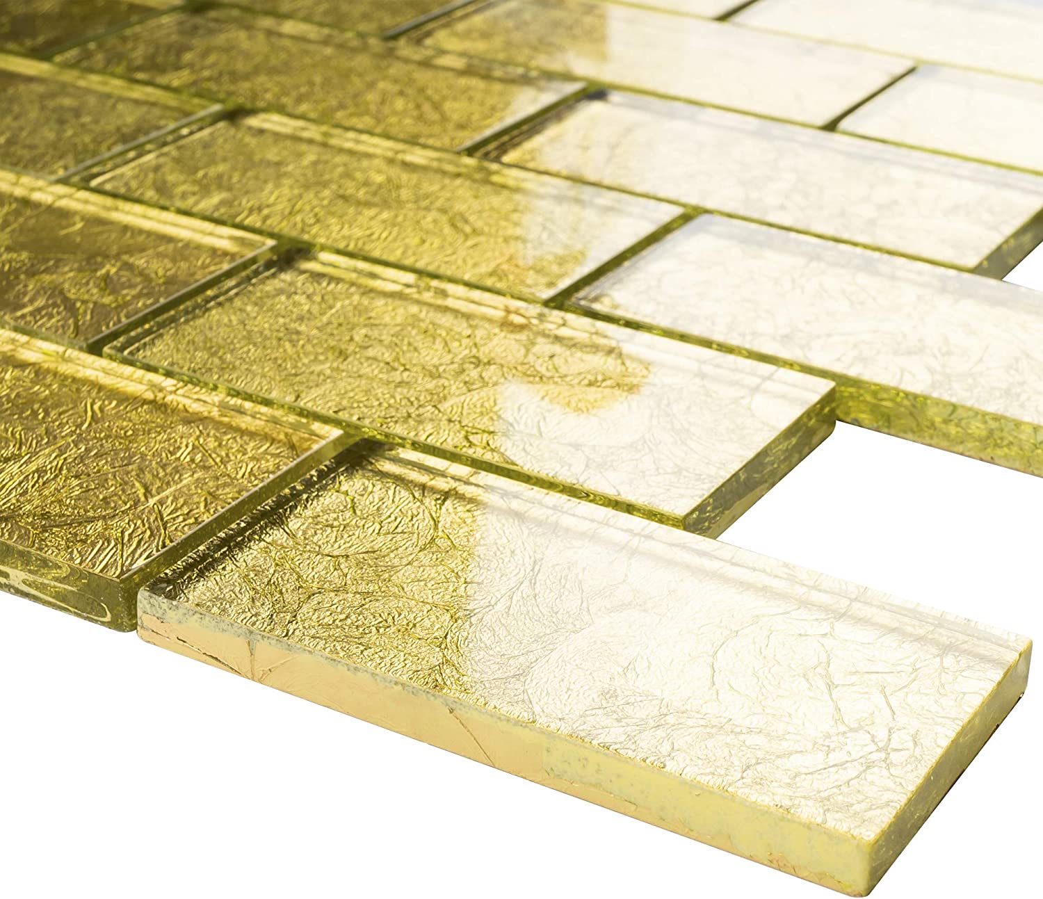2x4 Glossy Glitter Gold Yellow Brick Glass Wall Tiles for Bathroom and Kitchen Walls Kitchen Backsplashes