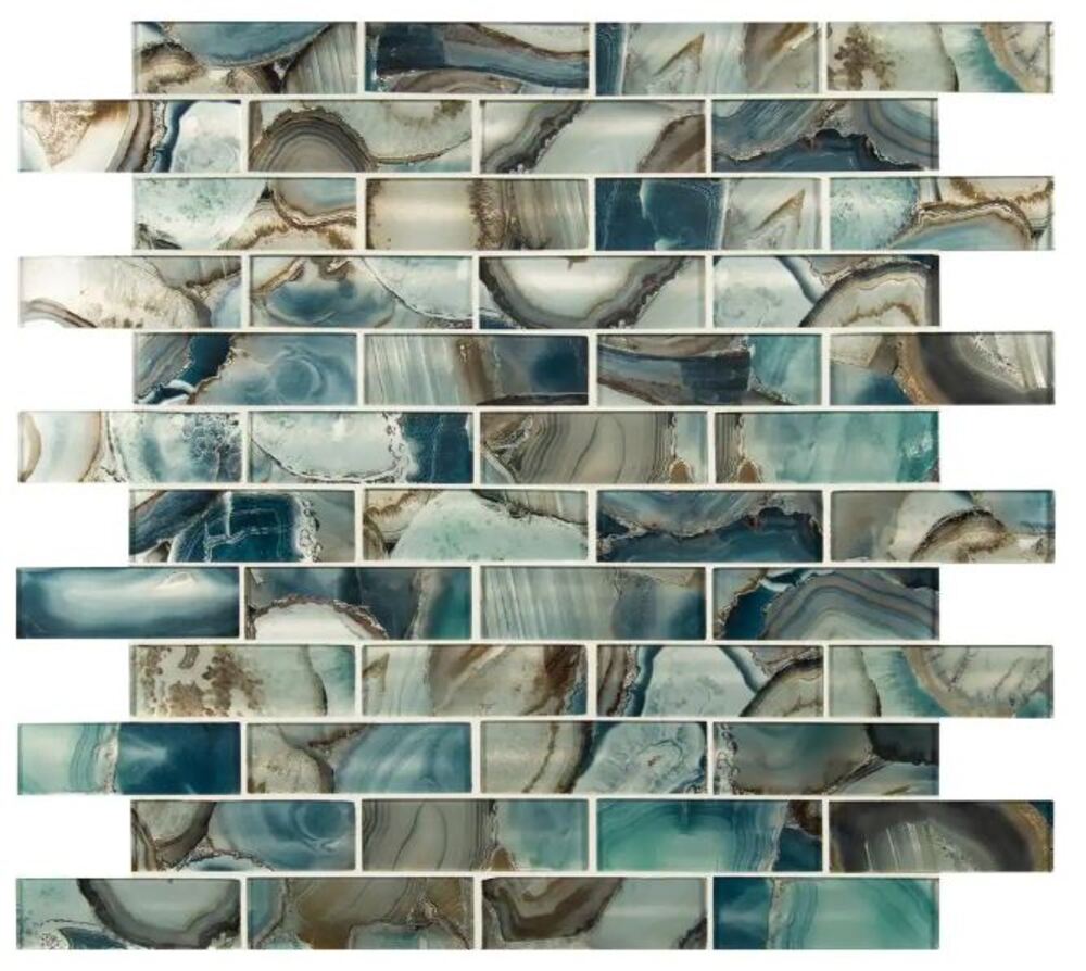 2x6 Ocean Blue and Brownish Shaded Brick Textured Glass Mesh Mounted Mosaic Wall Tile for Kitchen and Bathroom Backsplash, Shower Wall Tile, Accent Wall
