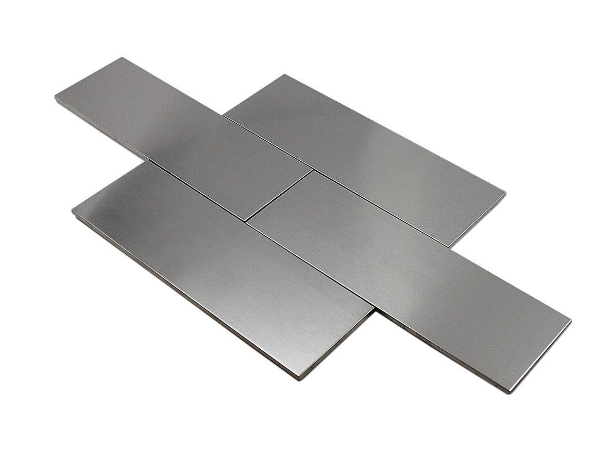Tile a kitchen backsplash or bathroom surfaces with the metal combination of backSplash Tile 3". x 9". Metal Stainless Steel Tile.