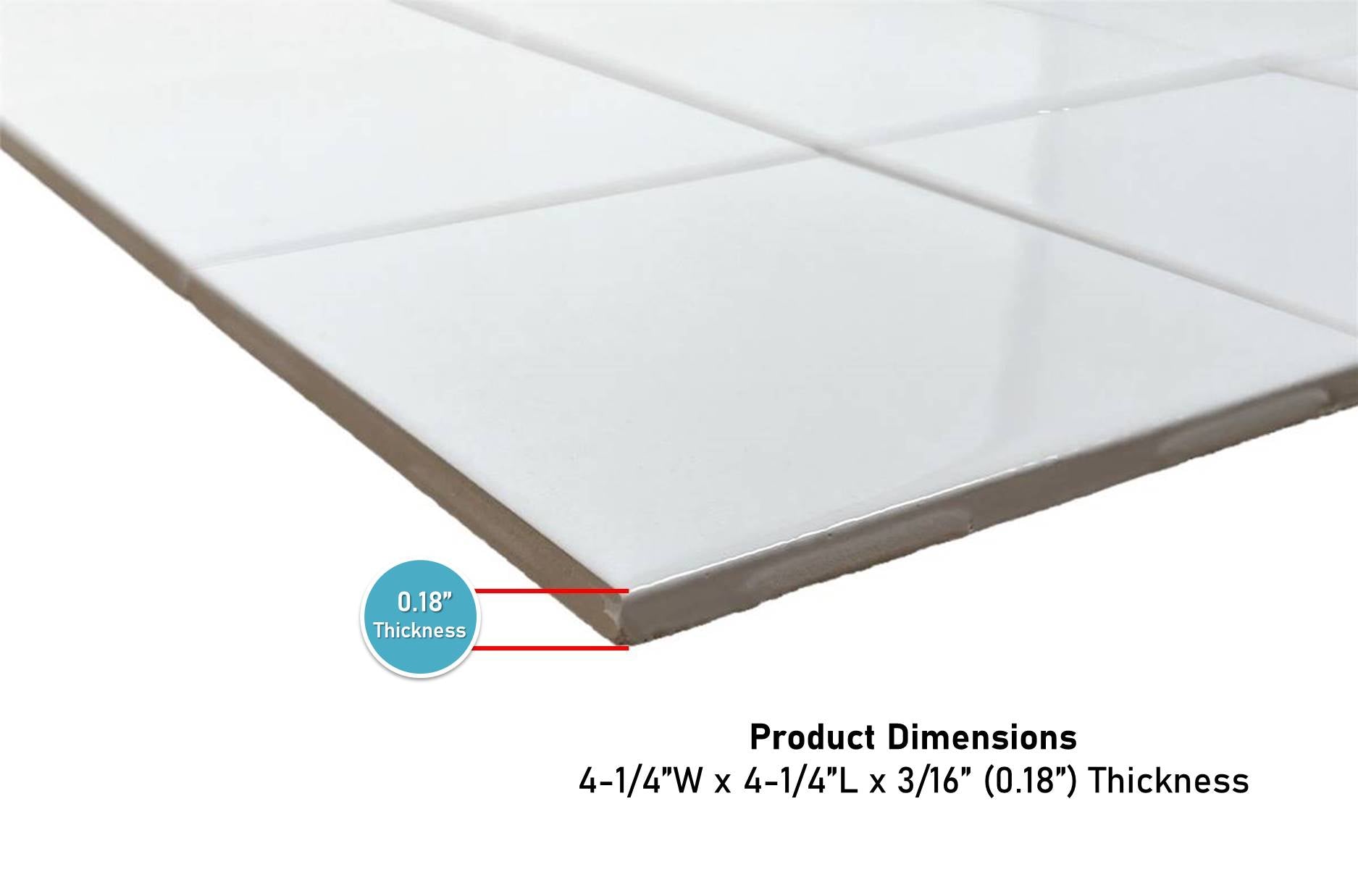 4 in White Ceramic Tile Gloss 4 1/4" Box of 10 Piece for Bathroom Wall and Kitchen Backsplash