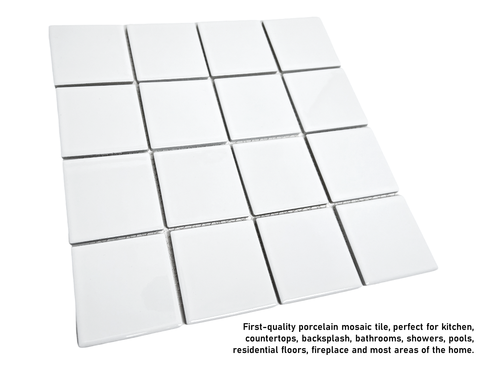 3x3 White Porcelain Floor Wall Tile for Spa Swimming Pool Shower Kitchen Countertop Bathroom Sink Backsplash