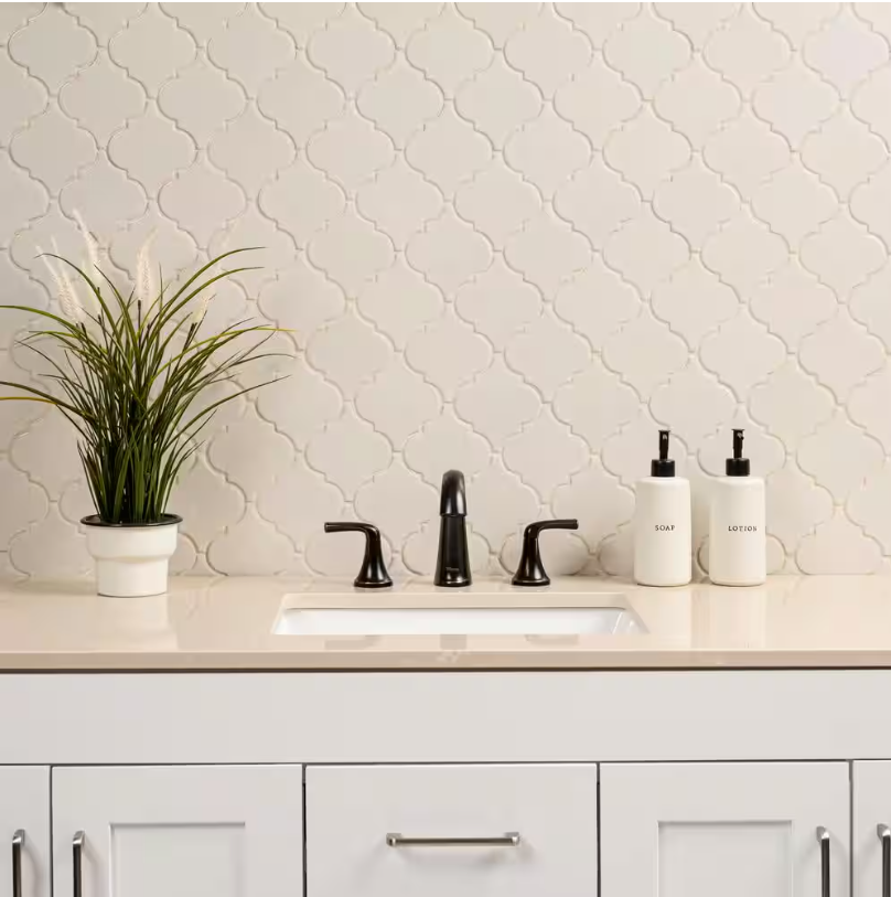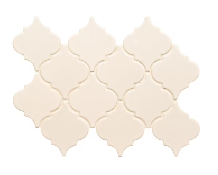 Bring timeless elegance to your space with Antique White Arabesque mosaic tile. Featuring the classic Moroccan-inspired arabesque pattern crafted in glossy ceramic, this tile showcases subtle antiqued edges that add depth and character. Ideal for accent walls, shower surrounds, countertops, and even light-traffic flooring, it offers versatile design possibilities. Pair it effortlessly with coordinating stones or tiles from our collection to create a cohesive, sophisticated look. Perfect for both residential and light commercial applications.