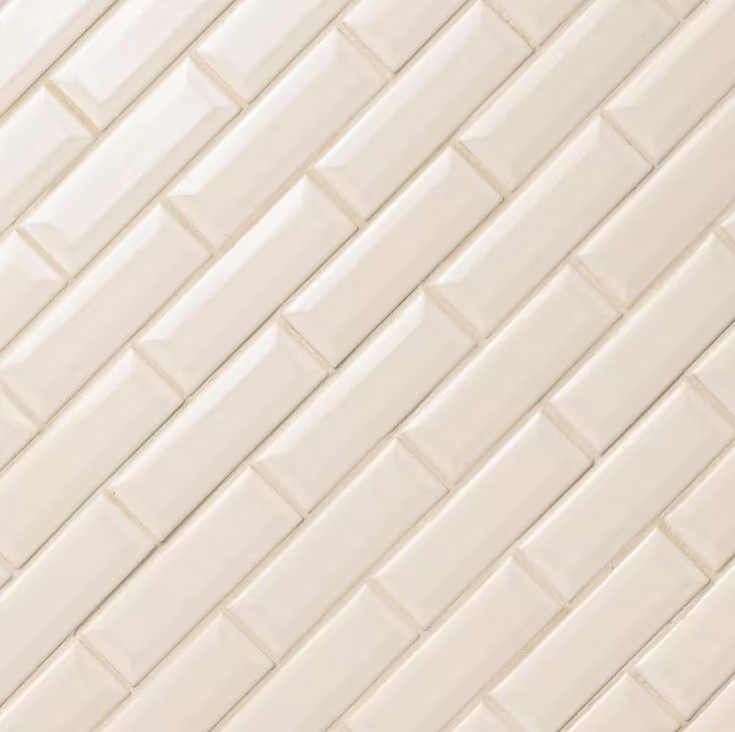 Elegant and understated, Antique White Beveled Tile lends an elegant, handcrafted element to any design. This beautiful backsplash tile is suitable for a wide range of installations including backsplashes in both kitchens and bathrooms as well as for showers and bathtubs. Their timeless elegance makes them the perfect complement to a wide range of other surfaces in inventory including natural stone slabs and other porcelain, ceramic, mosaic, and natural stone tiles in our collection.