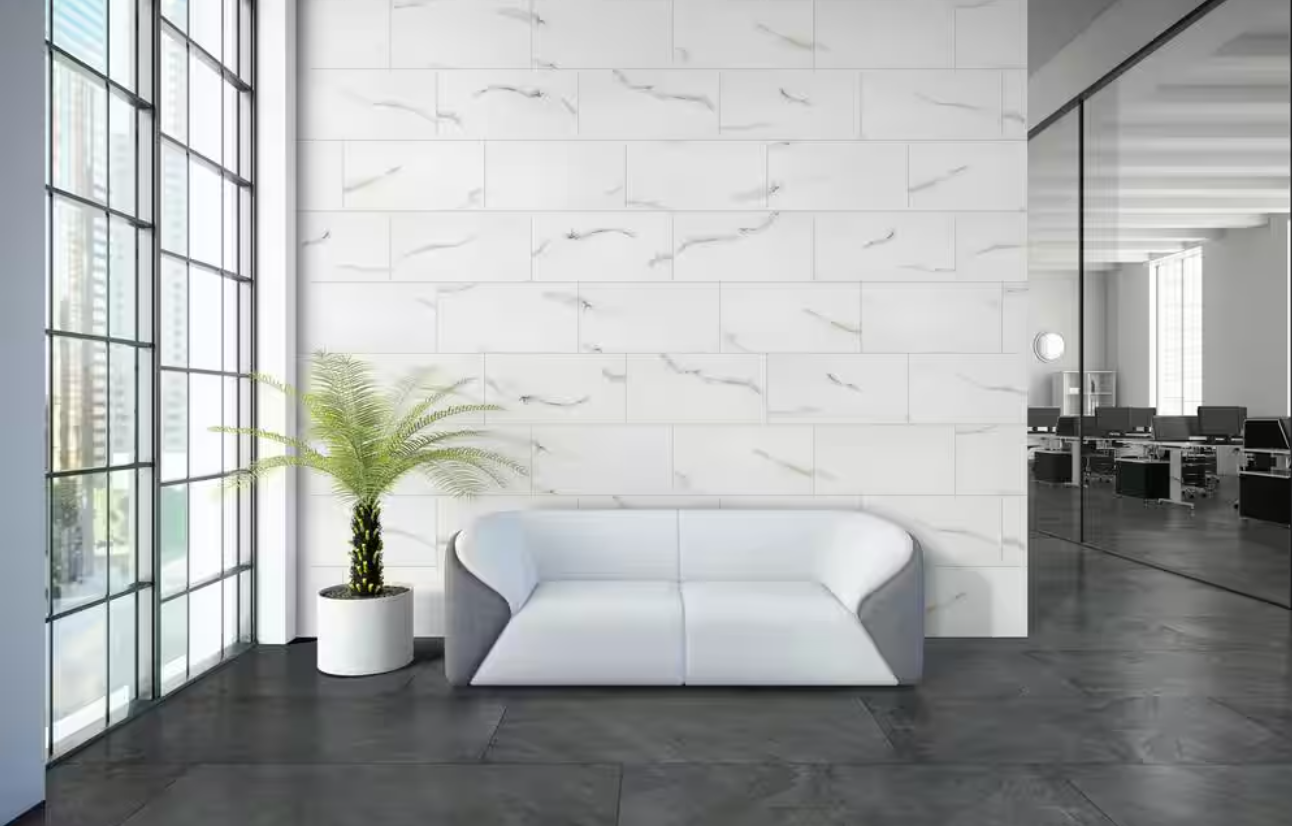Refine your home decor with this Aria Bianco 12 in. x 24 in. Polished Porcelain Floor and Wall Tile (16 sq. ft. / case). It works well in a kitchen, bathroom or other spaces. The polished white stone can give your space a unique look. You can use this in an outdoor or indoor setting.