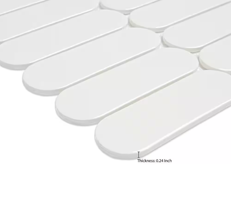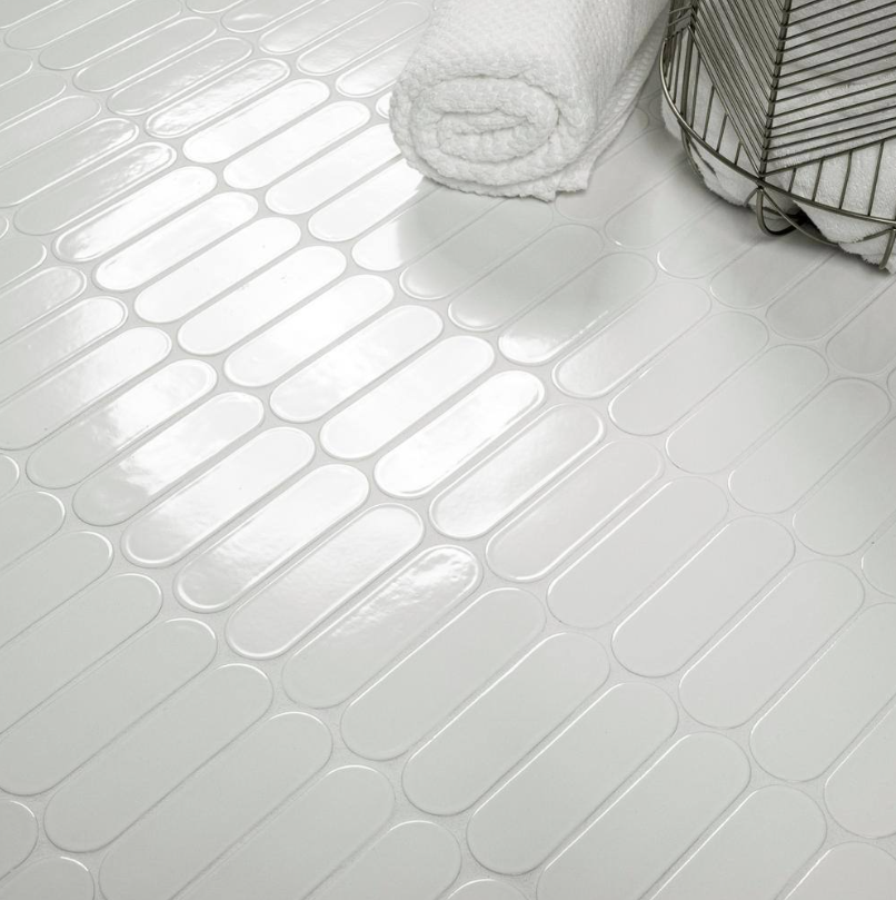 Bianco Glossy Ellipse recycled glass tile, showcasing an elongated scallop design in cool white with a polished finish, adds a touch of sophistication to any space. The mosaic's mesh-back ensures effortless installation, making it ideal for backsplashes, feature walls and even countertops in kitchens, bathrooms, and beyond. Perfect for both residential and commercial applications, this versatile tile brings a crisp, clean look and a touch of elegance to any setting.