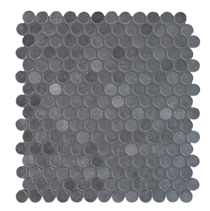 The Black Basalt Penny Round Honed Mosaic Tile combines the sleek sophistication of dark basalt stone with the timeless appeal of a penny round pattern. Honed to a smooth, matte finish, this mosaic tile offers a modern yet understated aesthetic with its deep black tones and subtle texture. Ideal for both contemporary and classic designs, this tile is perfect for adding a touch of elegance to floors, walls, backsplashes, and bathrooms. The round shape creates a dynamic, visually appealing pattern, making it perfect for accenting spaces that need a sophisticated edge. Durable and versatile, this tile is a stylish choice for a variety of applications.