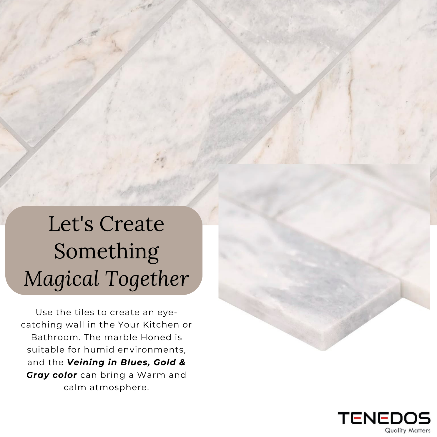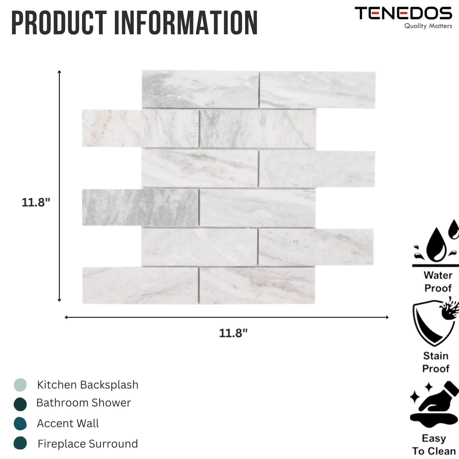 Blue Gray 2x6 Marble Honed Subway Floor Wall Tile on Mesh Mounted Backsplash for Kitchen, Bathroom, Fireplace, Accent Decor