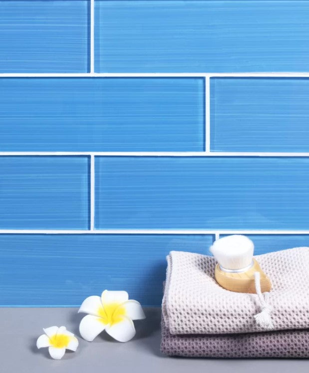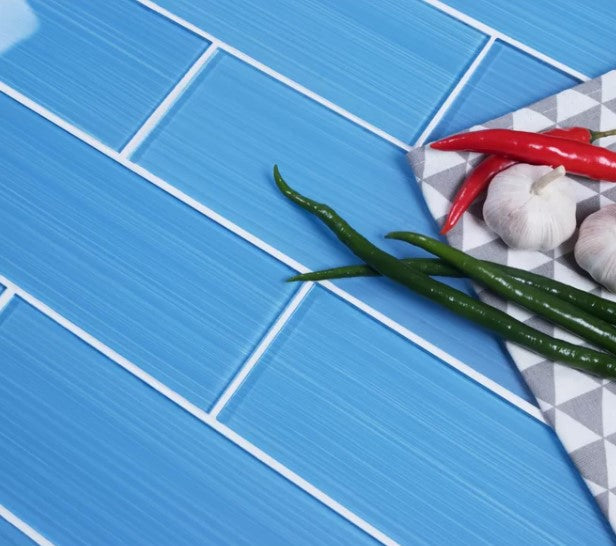 3x12 Blue Sky Hand Painted Glass Subway Wall Tile for Kitchen Backsplash, Accent décor, Bathroom Shower