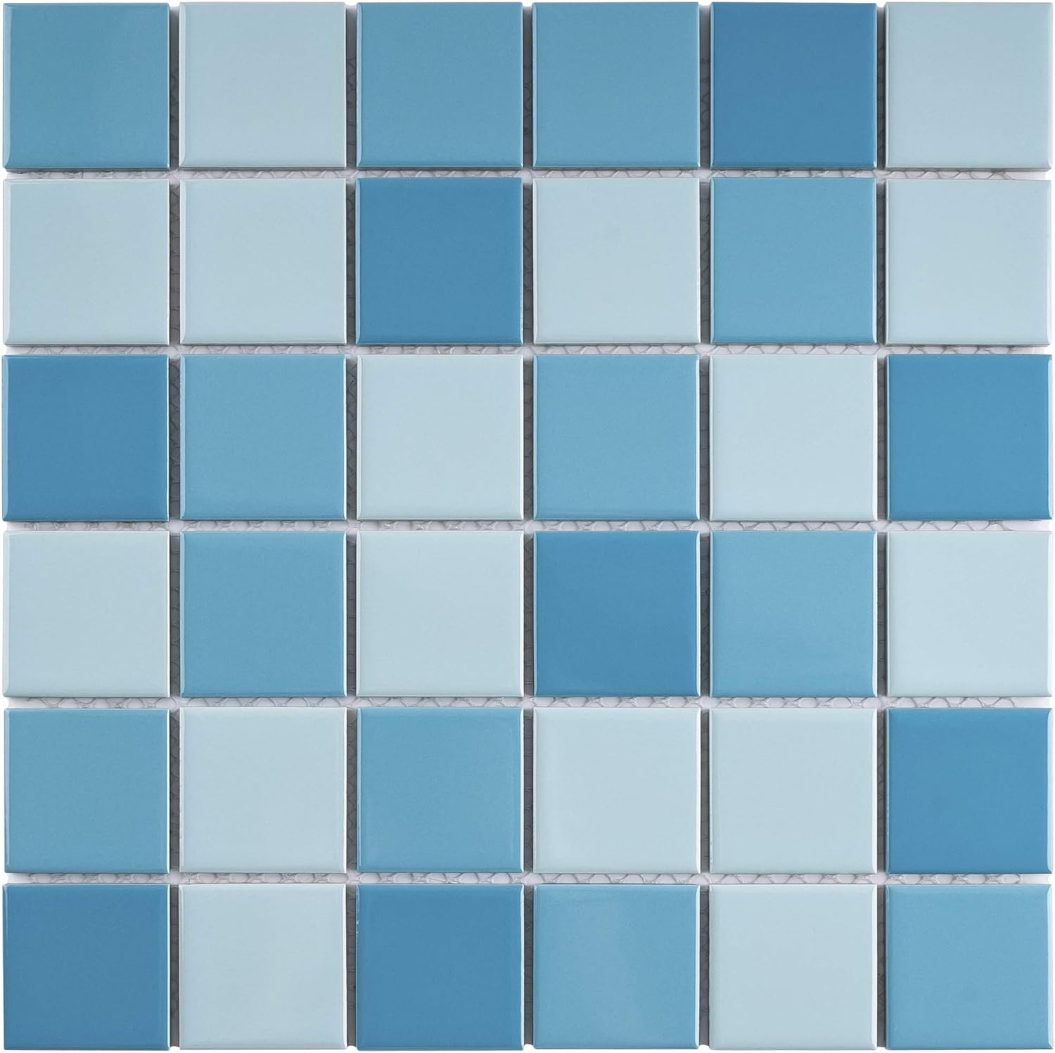 BT-PM21 2" x 2" Square Creamy Light Blue Porcelain (Polish Finish) Floor & Wall Tile & Pool Tile Mosaic Tile 11-3/4 in. x 11-3/4 in. x 6mm (Thickness)