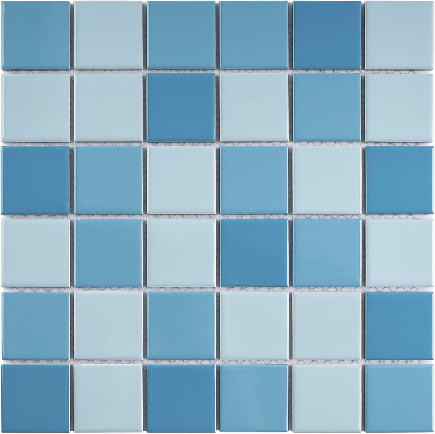 Bring a fresh, modern look to your space with the Ocean Breeze Light Blue 2"x2" Porcelain Tile Sheet - Gloss Look for Pools, Bathrooms & Floors. Featuring a soft, creamy light blue tone and a high-polish glossy finish, this porcelain mosaic tile creates a bright and inviting atmosphere in any setting. Each sheet measures 11.75" x 11.75", featuring perfectly arranged square 2"x2" tiles mounted on mesh for easy installation.