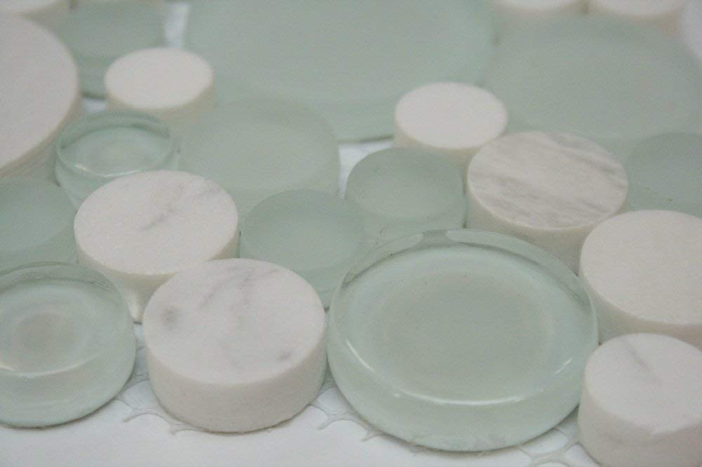 Bubbles Snow Dove Mosaic Tiles with White Marble with Frosted and Polished Glass for Bathroom and Kitchen Walls Kitchen Backsplashes