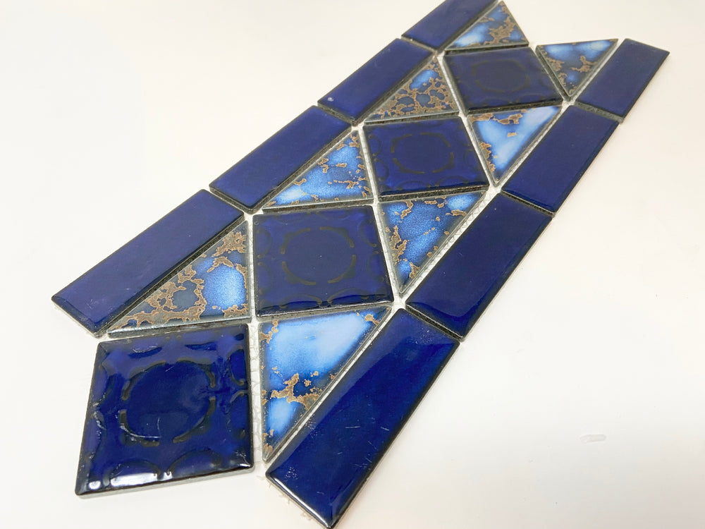 Calacatta Blue with Cobalt Blue Porcelain Border Pool Wall and Floor Tile on 6x12 Mesh Mounted for Easy Installation for Bathroom Tile| Shower Backsplash| Kitchen| Accent Wall