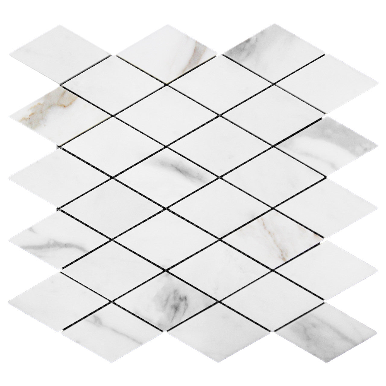 Calacatta Gold Large Diamond Mosaic Tile, also known as Calcutta Gold Large Diamond Mosaic Marble, is available in honed and polished finishes. This premium-grade (rhomboid) large diamond mosaic tile is perfect for both residential and commercial projects. Rhomboid large diamond mosaic tiles are especially preferred as floor tiles for their clean, aesthetic qualities. A wide selection of coordinating products is available, including Calacatta Gold basketweave mosaics, Calacatta herringbone mosaics, Calacatta hexagon mosaics, 3x6 marble subway tiles, 12x12 Calacatta marble tiles, 4x12 Calacatta marble tiles, Calacatta borders, Calacatta moldings, and Calacatta baseboards.