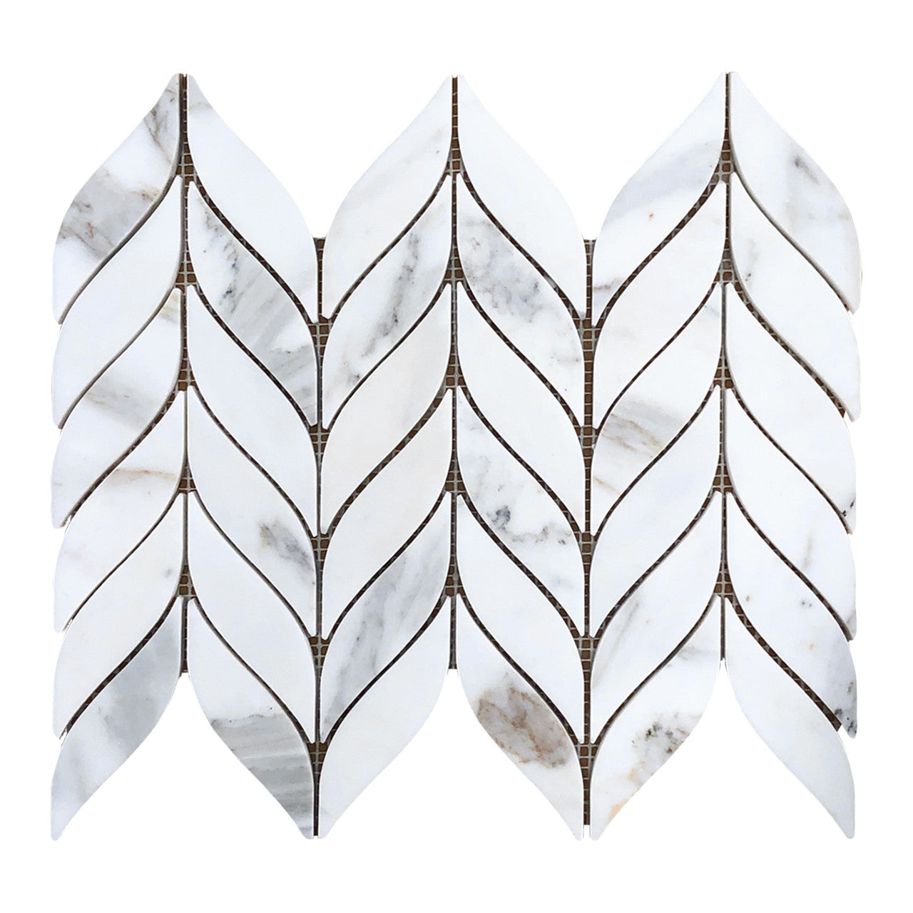 Calacatta Gold Leaf Shape Mosaic Tile, also known as Calcutta Gold Leaf Shape Mosaic Marble, is available in honed and polished finishes. This premium-grade (feather) leaf shape mosaic tile is perfect for both residential and commercial projects. Leaf shape mosaic tiles are especially preferred as floor tiles for their clean, aesthetic qualities. A large selection of coordinating products is available, including Calacatta Gold long octagon mosaics, Calacatta herringbone mosaics, Calacatta hexagon mosaics, 3x6 marble subway tiles, 12x12 Calacatta marble tiles, 4x4 Calacatta marble tiles, Calacatta borders, Calacatta moldings, and Calacatta baseboards.