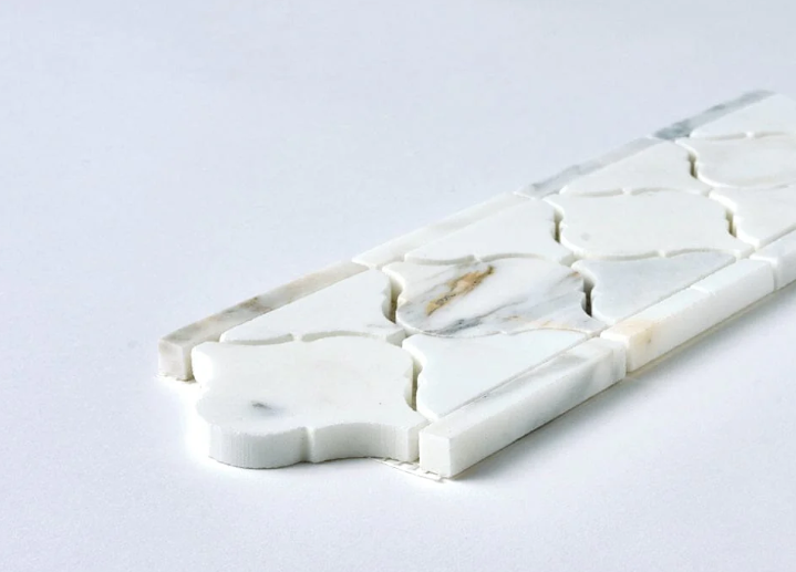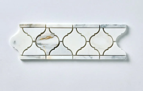 The Calacatta Gold Marble 4x12 Arabesque Border is a stunning addition to any space, blending classic elegance with intricate design. Crafted from luxurious Calacatta Gold marble, this border features the marble’s signature golden veining against a rich white backdrop. The arabesque shape adds a touch of refinement and intricacy, making it ideal for framing backsplashes, flooring, or feature walls. This border pairs beautifully with both contemporary and traditional designs, offering a timeless, sophisticated look. Use it to enhance your space with a touch of artistry and luxury, perfect for both residential and commercial applications.