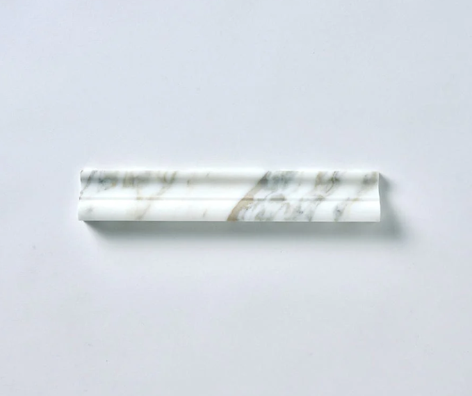 Enhance your design with the timeless elegance of Calacatta Gold Marble Crown Molding Trim. Crafted from classic Italian polished white marble, this trim features soft grey and golden veining that complements any luxurious interior. Perfect for adding a refined architectural detail, this crown molding trim brings sophistication and a touch of heritage to walls, ceilings, and transitions in your space.