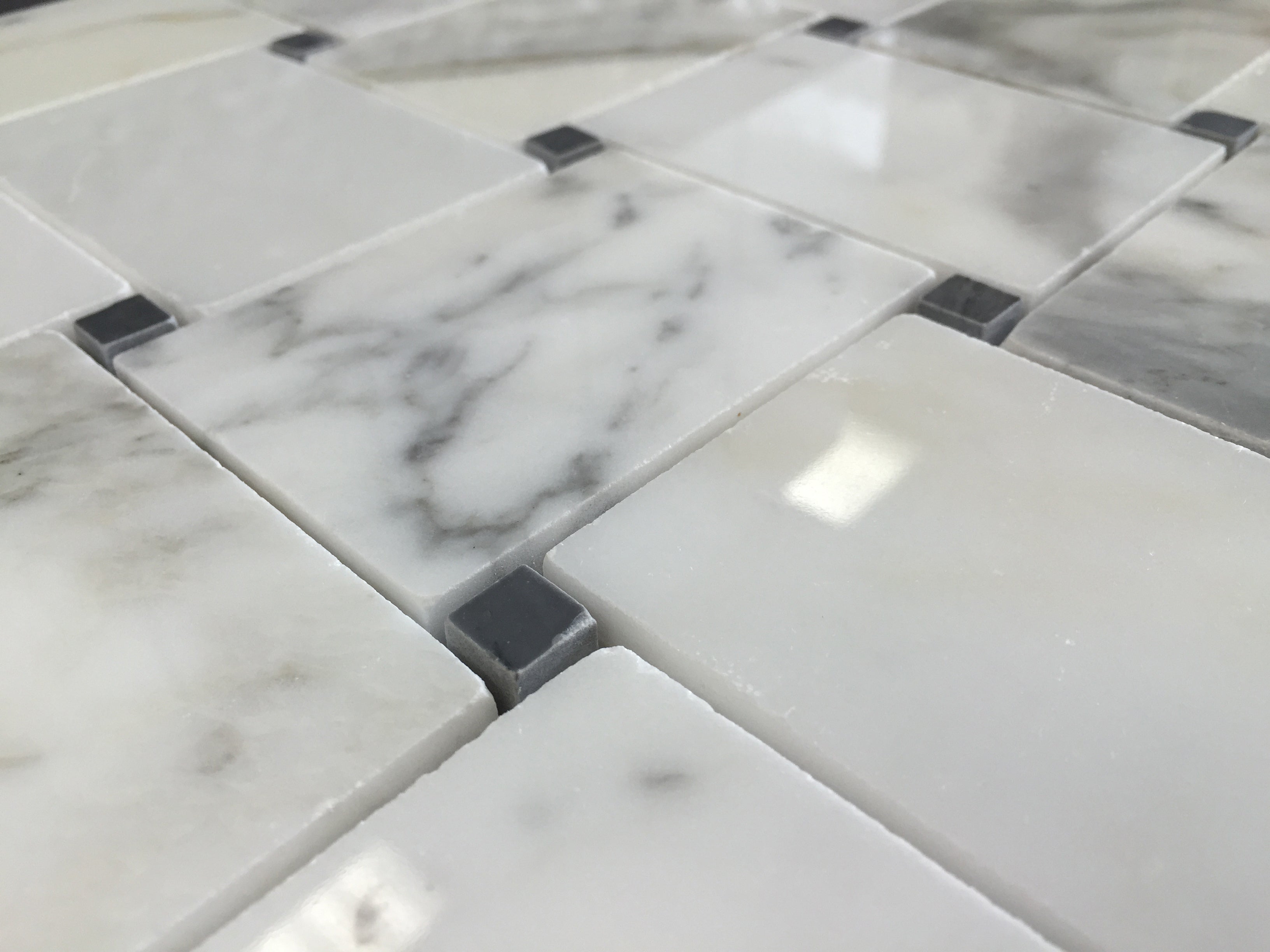 • Tile Size: 2 x 4 (Calacatta), 1/4 x 1/4 (Grey Dot)