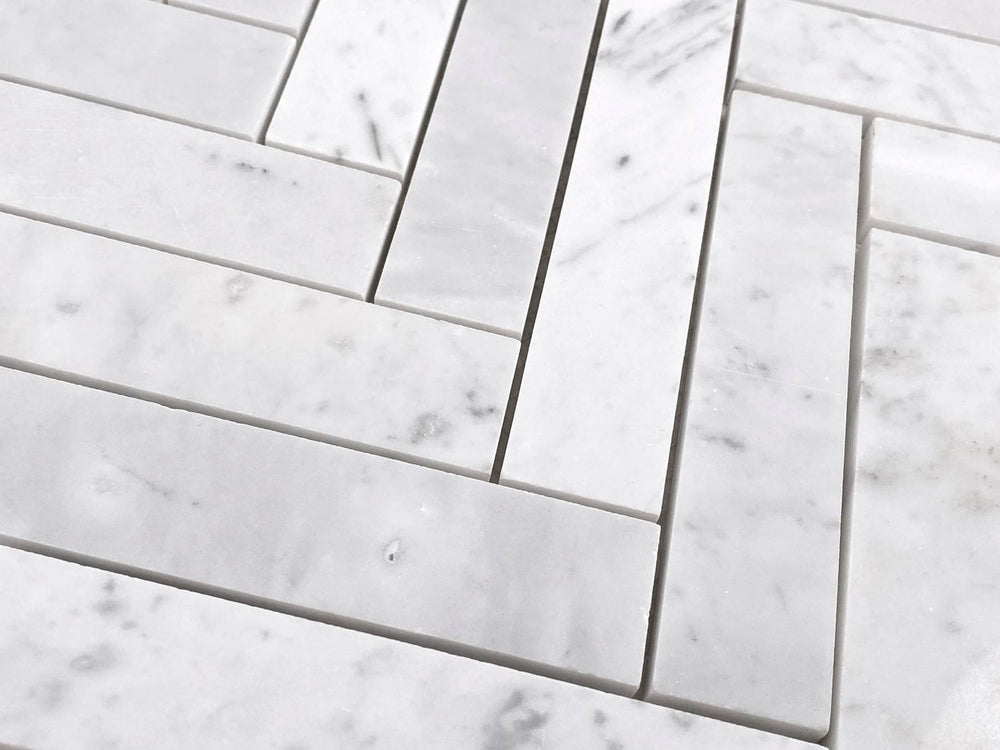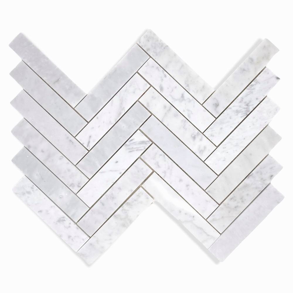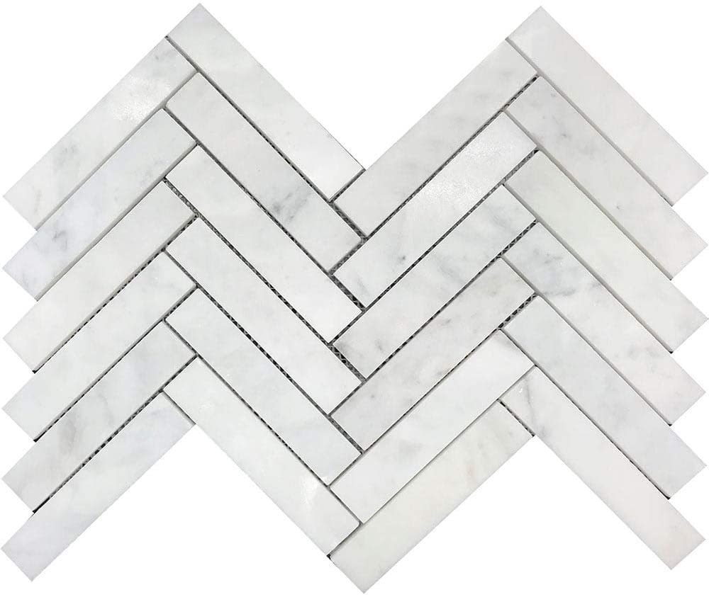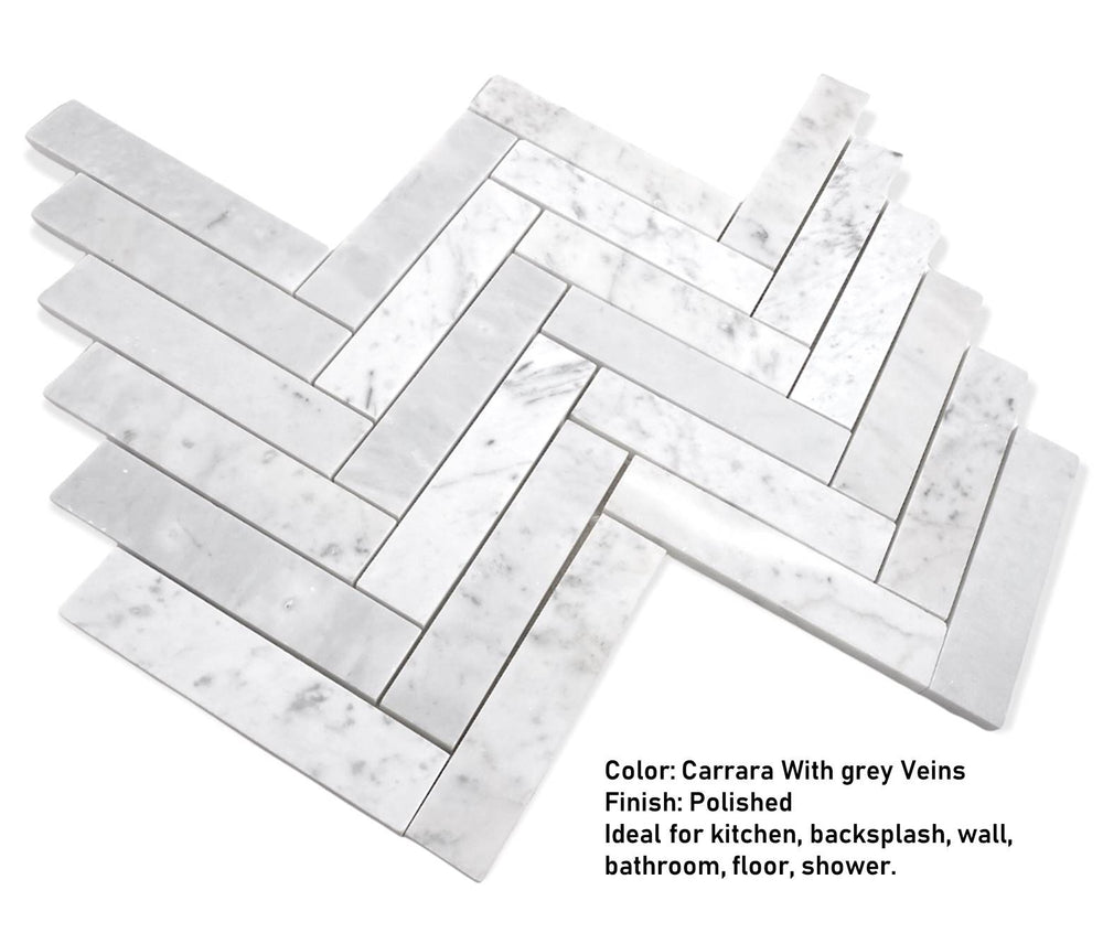 Carrara Marble 1x6 Long Herringbone Mosaic Tile Polished for Kitchen Backsplash Wall Bathroom Flooring Shower