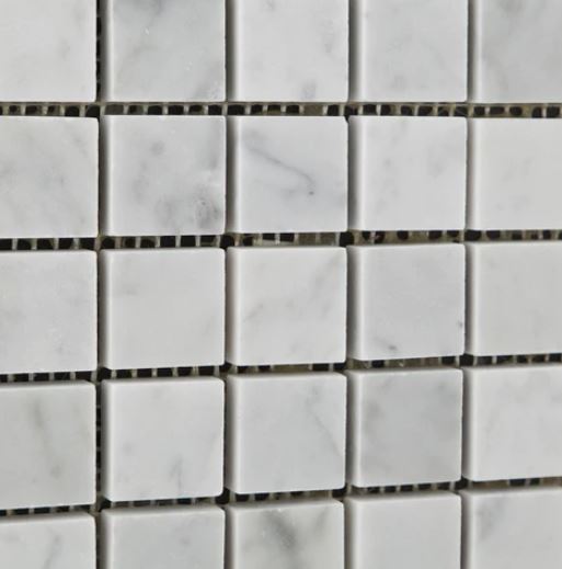 Our Carrara Marble Italian Bianco Carrera 1x1 Mosaic Tile is crafted with care from natural marble and honed for a mirror-like finish. Enjoy the classic elegance of marble with shades of grey and white that will enhance any interior or exterior space. Ideal for walls, floors, backsplashes, and more.