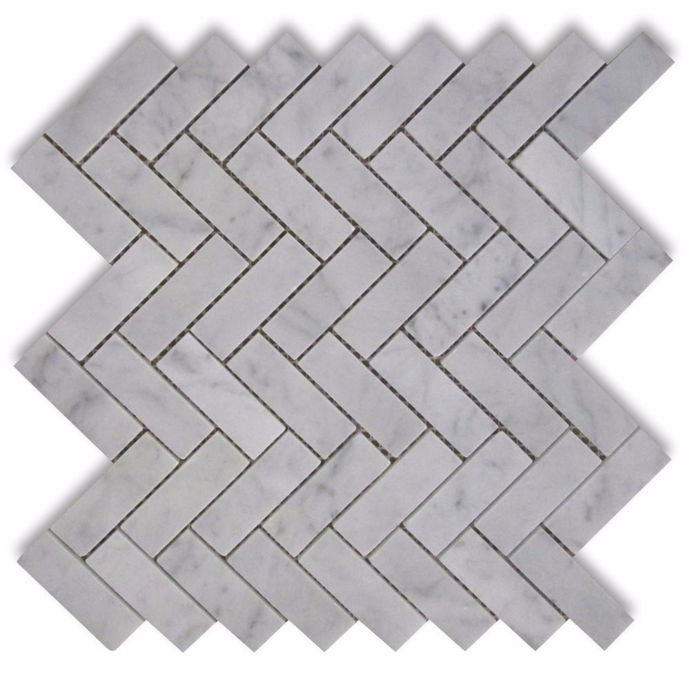 - Premium Grade Carrara Marble Italian White Bianco Carrera 1x3 Herringbone Mosaic Tile Polished- Stone Sizes per Piece:*...