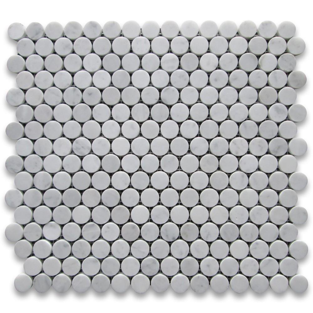 - Premium Grade Carrara Marble Italian White Bianco Carrera 3/4" Penny Rounds Mosaic Tile Honed