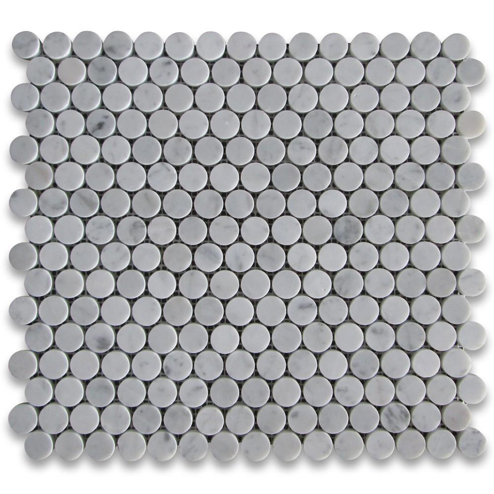 - Premium Grade Carrara Marble Italian White Bianco Carrera 3/4" Penny Rounds Mosaic Tile Polished