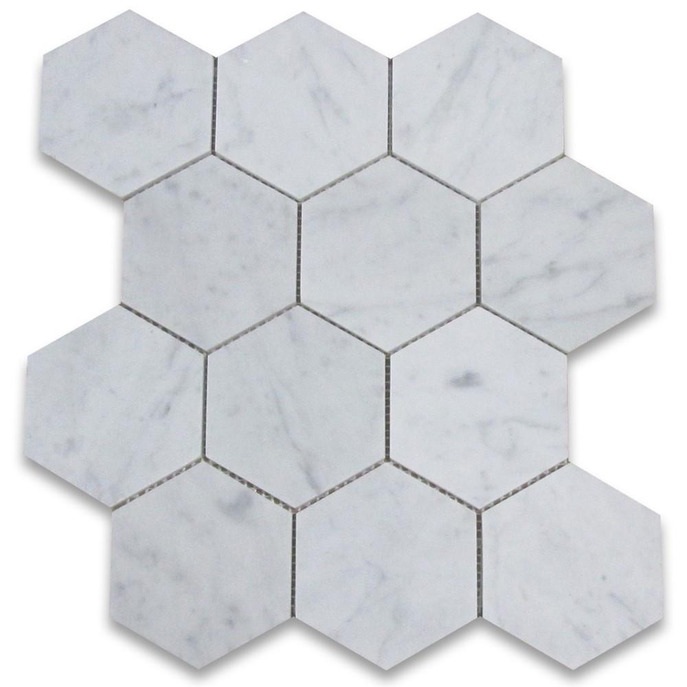 - Premium Grade Carrara Marble Italian White Bianco Carrera 4" Hexagon Mosaic Tile Polished