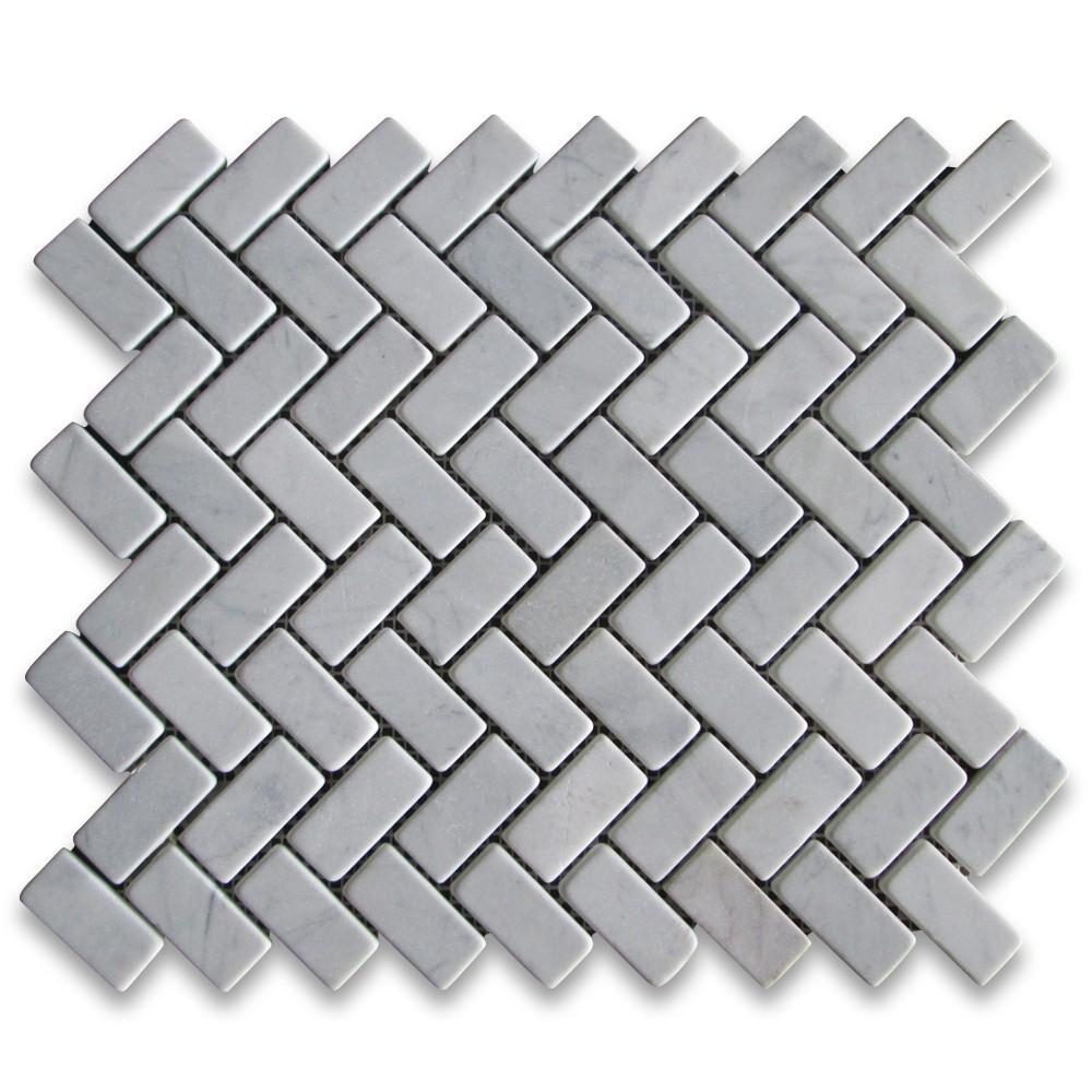 Carrara Marble Italian White Bianco Carrera Herringbone Mosaic Tile Floor Wall Tile Tumbled
