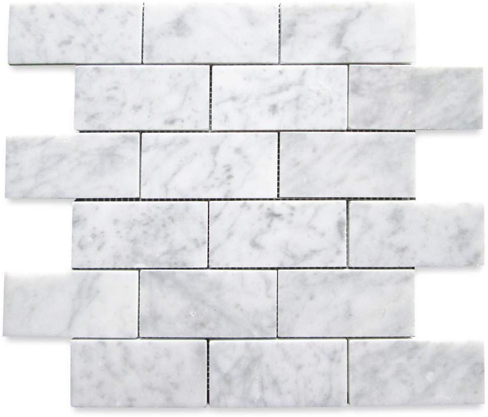 Enhance your flooring or wall decor with the timeless and elegant look of the Carrara White Marble Mosaic. Crafted from durable real marble stone, this grand brick shaped mosaic tile features a polished finish that adds both sophistication and beauty to any interior space. The perfect addition to kitchens, bathrooms, and entryways.