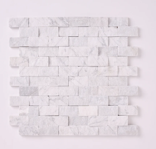 Carrara marble tiles are a classic white marble with a mixed fleuri and vein cut that blend to create subtle yet distinctive patterns. The veining in white Carrara marble is mainly grey with light to a white background, but Carrara can also have a slight gold tint to its veining that provides added dimension.