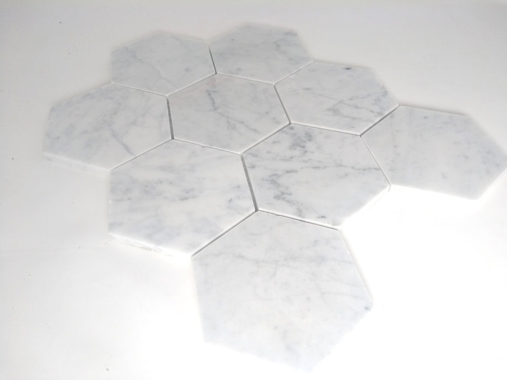 Carrara White Marble 4 inch Hexagon Mosaic Wall Floor Tile Honed for Kitchen Backsplash Bathroom Flooring Shower Surround Dining Room Entryway Corrido Spa