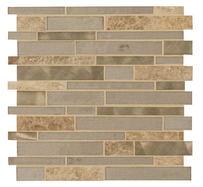 By integrating natural stone, metal, and glass, the MSI Champagne Toast Interlocking Mosaic Tile provides a contemporary and elegant solution to elevate the aesthetic of any space.