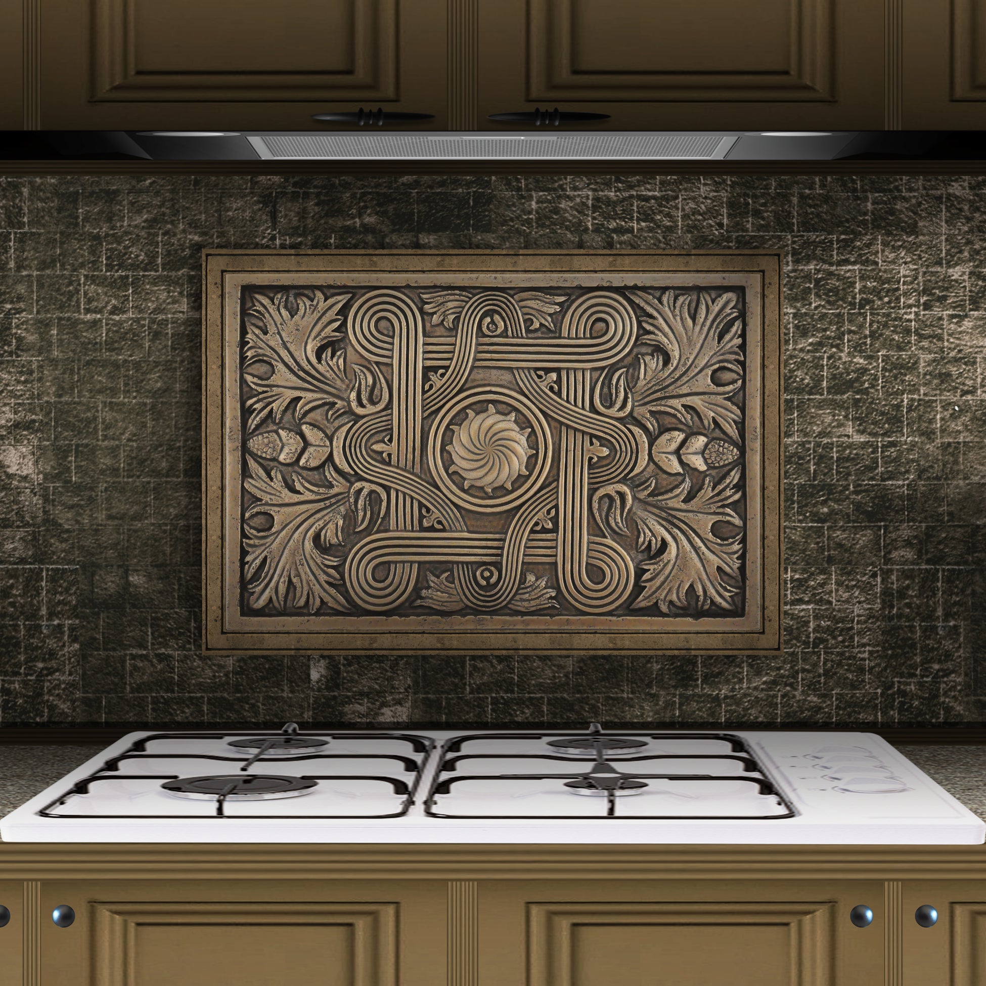 Kitchen Backsplash Premium Mediterranean Bronze Metal Mural Hand Made Textured Tile