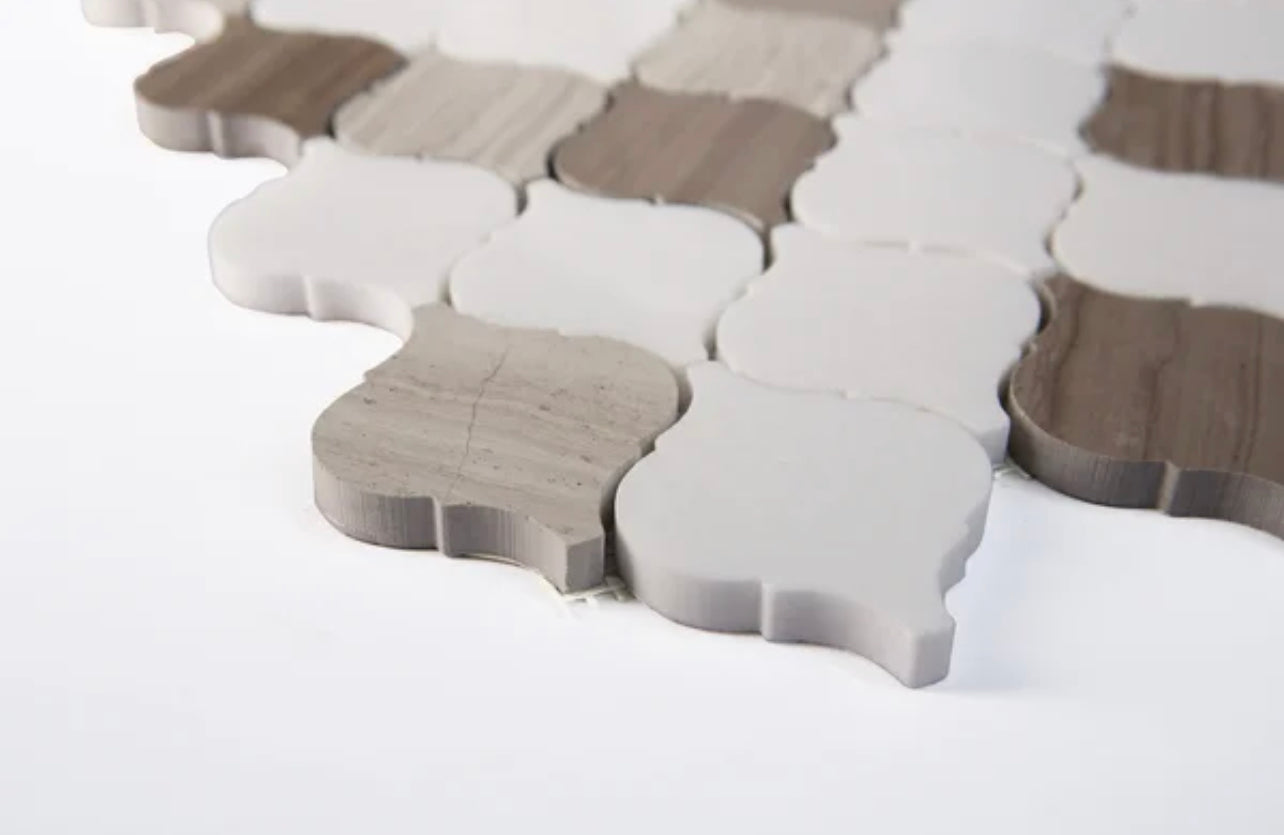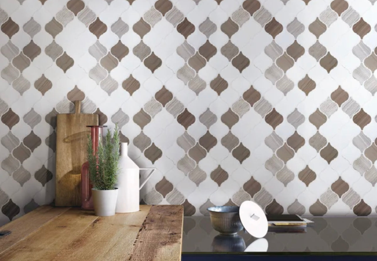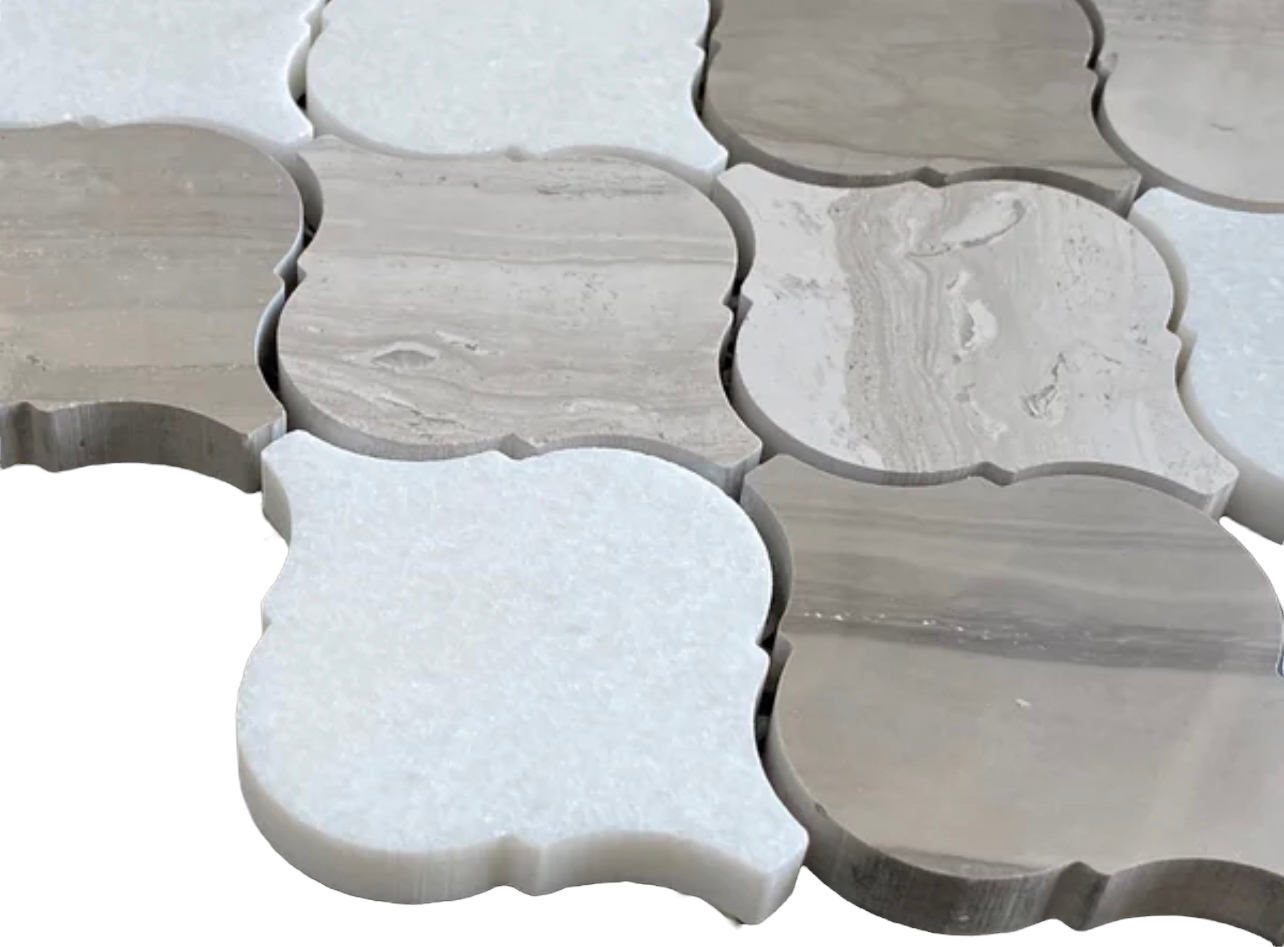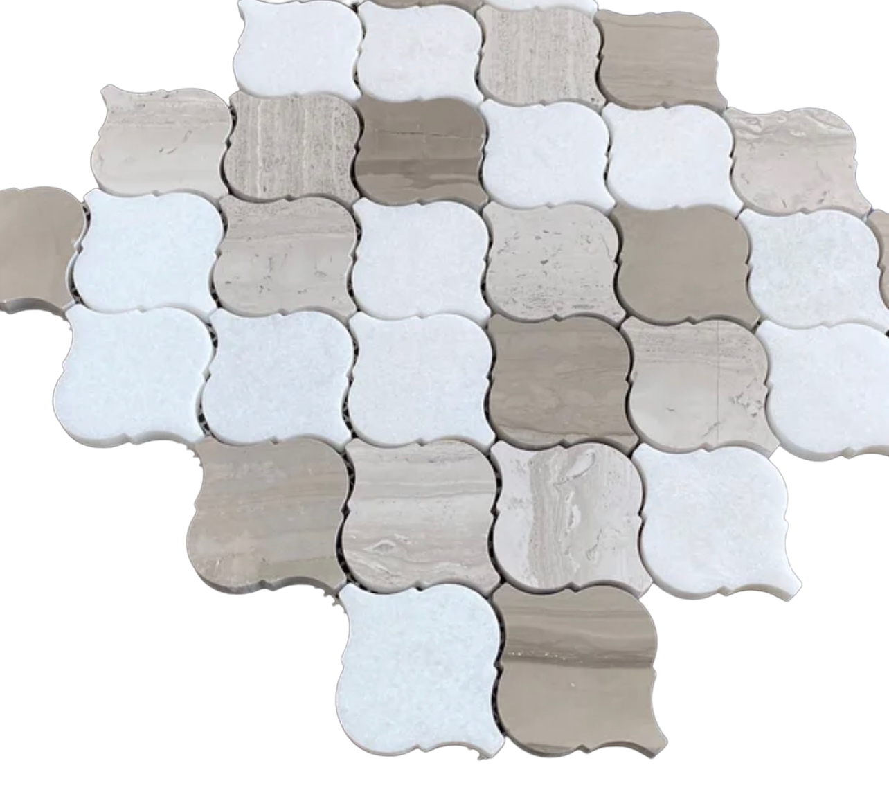 Marbella White Thassos Oak Grey 3 in. Arabesque Lantern Polished Marble Floor Wall Tile for Kitchen Backsplash, Fireplace, Bathroom Wall, Accent Wall
