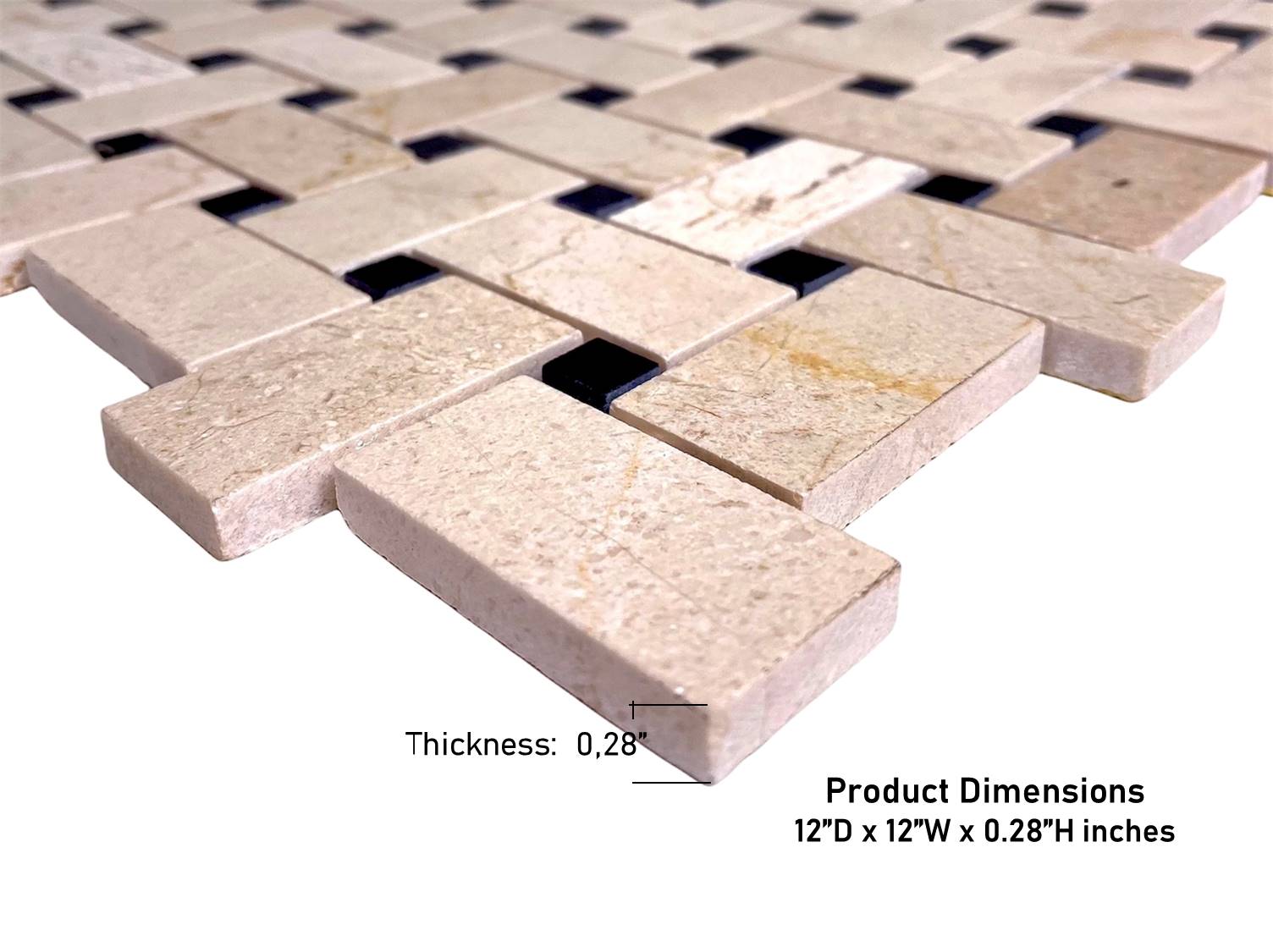 Crema Marfil Basketweave Marble with Black Dots Polished Mosaic Tile for Bathroom and Kitchen Walls Kitchen Backsplashes