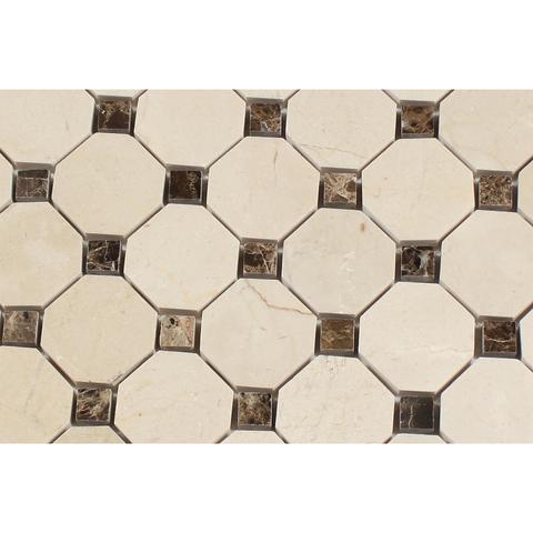 Crema Marfil Octagon w/ Emperador Dark Dots Polished Mosaic Tile