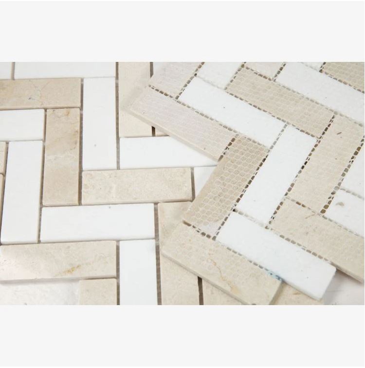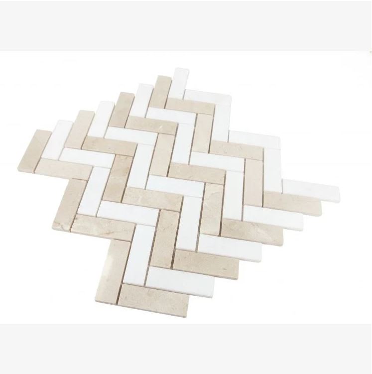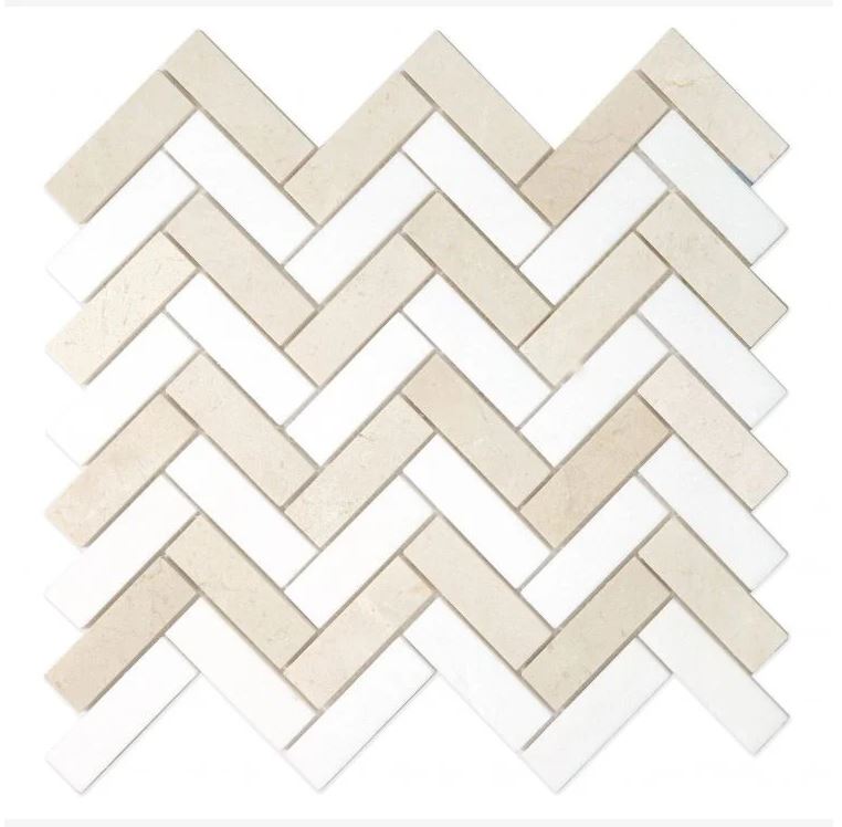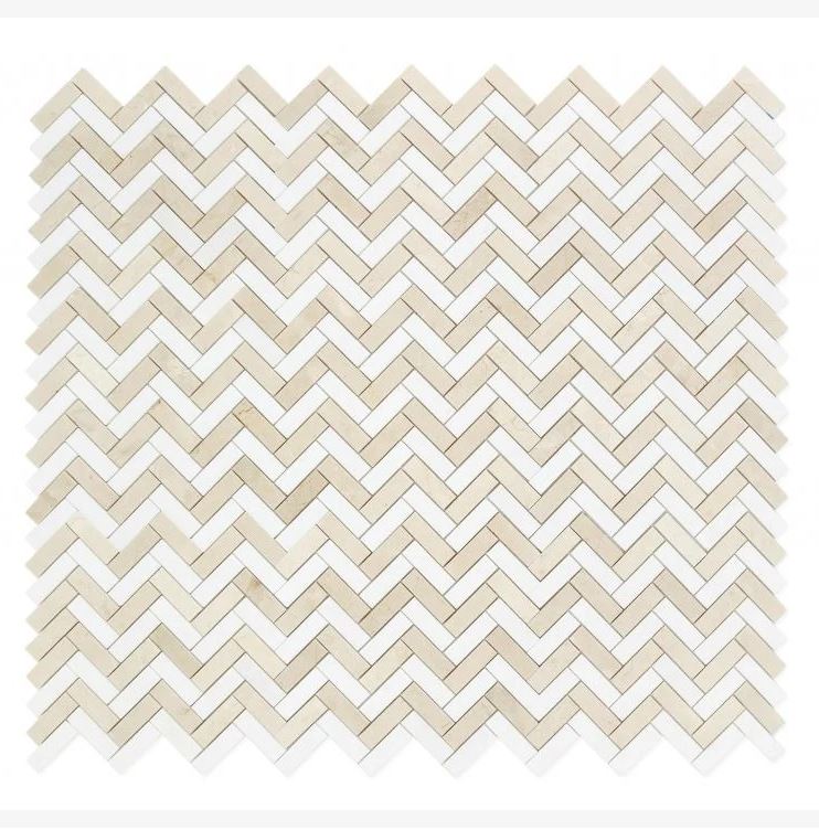 Crema Marfil & Thassos White Marble Herringbone 1X3 Mosaic Polished