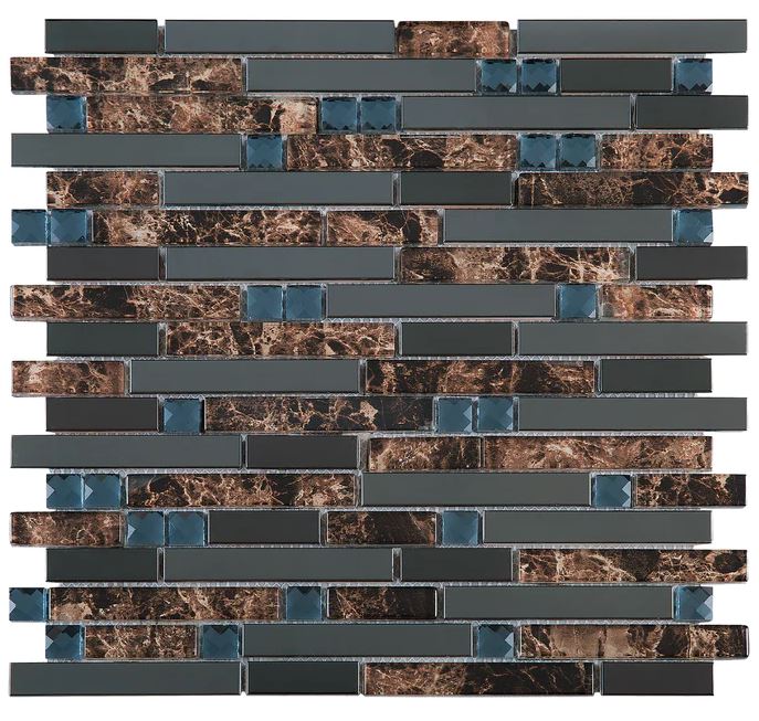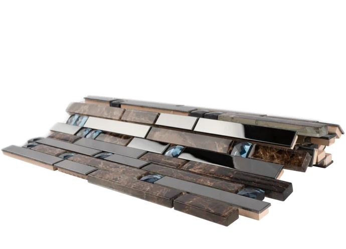 Dark Emperador and Stainless Steel Luxury Diamond Glass Mosaic Tiles