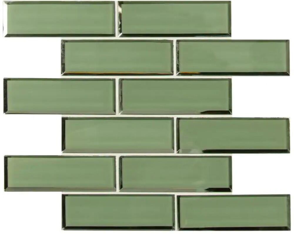 Evergreen Beveled Look Subway 2x6 Glass Mosaic Wall Tile for Kitchen Backsplash, Bathroom Walls