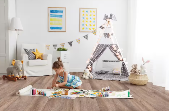 This flooring is suitable for different levels of a home (above, on, or below grade) and can be used with select radiant heating systems. It resists mold and mildew growth, adding a layer of protection for health and safety.