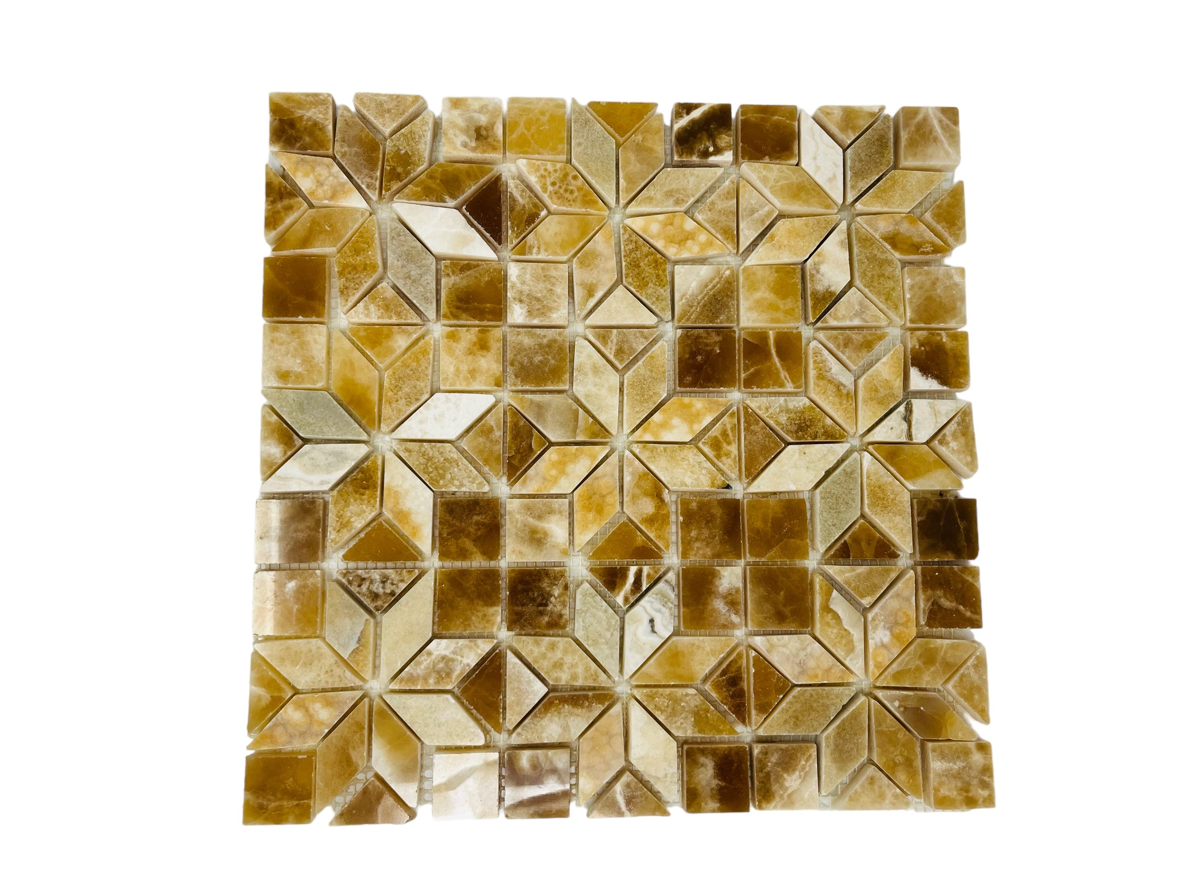 Geometric Star Pattern Marble Caramel Gold Honey Onyx Polished Mosaic Floor and Wall Tile for Kitchen Backsplash, Bathroom Wall, Fireplace Surround (5 Sheet