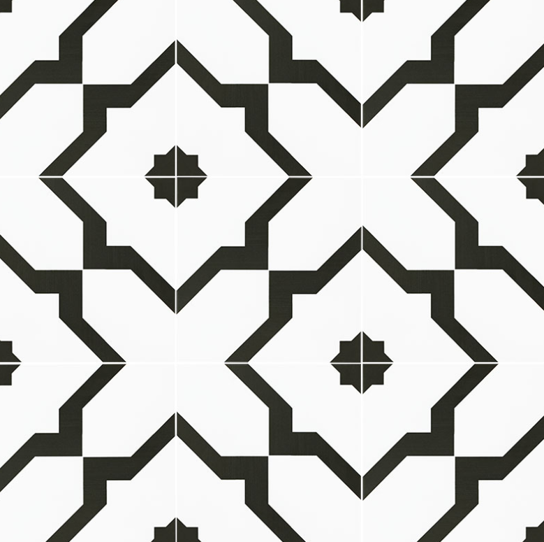 Elevate your space with the Zaria Gia Encaustic Tile, a striking member of our Zaria Collection. Featuring a bold black and white flower-inspired geometric design, these 8"x8" porcelain tiles create a seamless and modern pattern that transforms any room into a statement of style. Each tile is crafted with a durable porcelain body, making it resistant to stains, moisture, and heavy foot traffic. The matte finish adds a contemporary look while ensuring easy maintenance—simply wipe clean to keep your surfaces pristine. With no sealing required, the Gia tile is perfect for busy households and high-traffic areas. Suitable for floors, walls, countertops, and backsplashes, it offers endless versatility. Whether you’re designing a chic kitchen backsplash, a timeless bathroom floor, or an accent wall, the Gia tile provides durability, elegance, and effortless beauty. Bring pattern, contrast, and modern flair to your home with the Zaria Gia Porcelain Tile