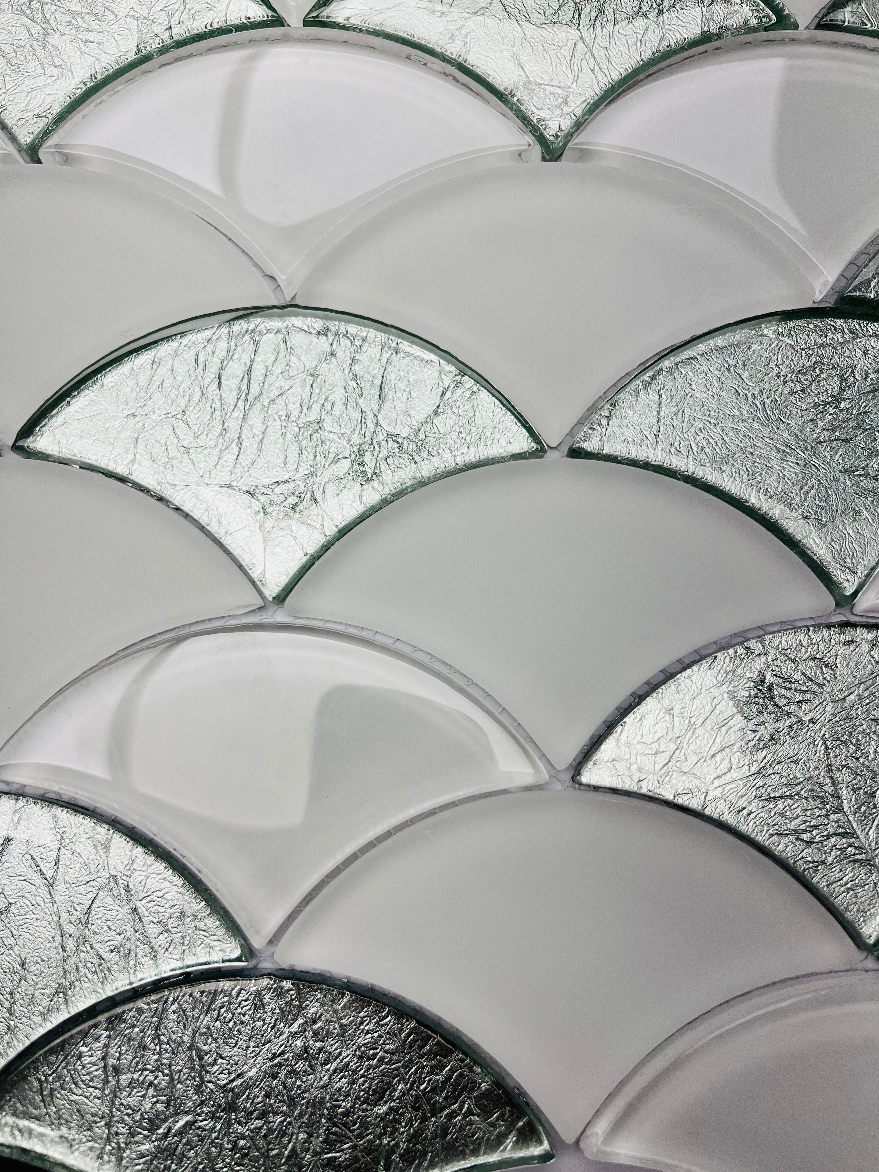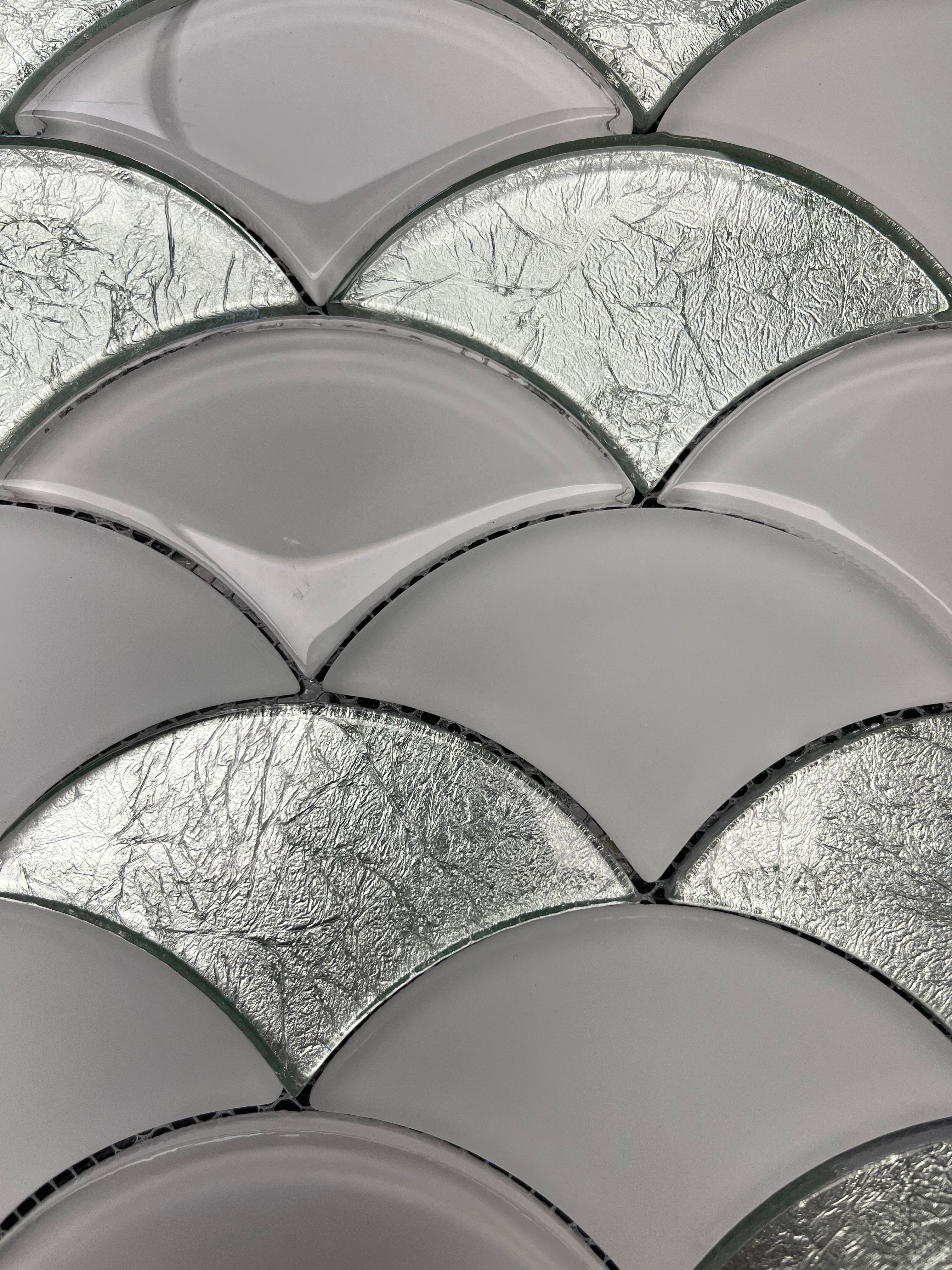 Glitter Silver Sky Scallop Pattern 12x12 Glass Mosaic Wall Tile for Kitchen Backsplash, Bathroom Shower, Accent Wall