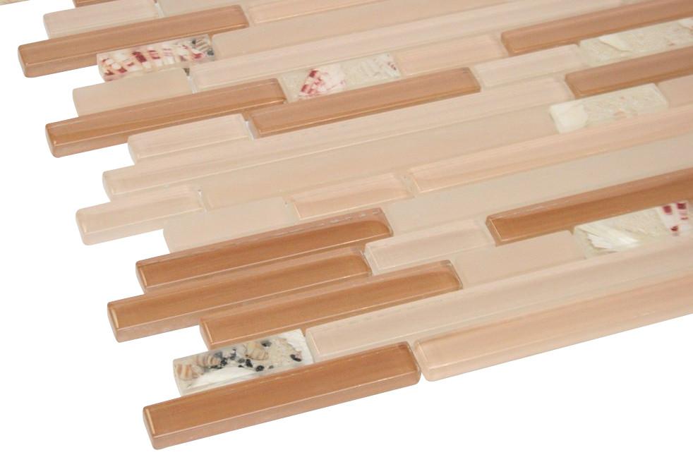 Sheet Size: 12 7/8 x 11 3/4" x 3/8"Tile Size: Random BrickType: Glass, ResinFinished: Glossy, MatteHTCQ17