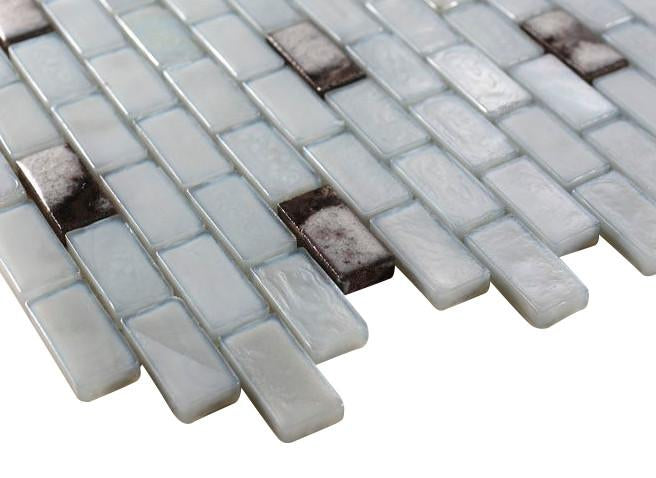 Glossy White and Brown Stone Wet Look Glass Mosaic Tiles