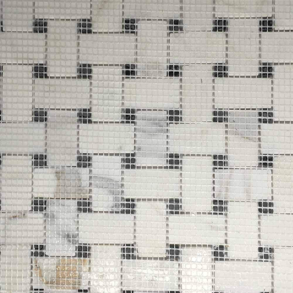 Calacatta Gold Italian Marble Basketweave Mosaic Floor Wall Tile with Black Dots for Bathroom Shower, Kitchen Backsplashes, Fireplace