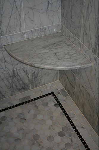 Italian White Carrara Marble Polished 18'' Corner Solid Surface Wall Mount Shower Seat Corner Seat 18-in x...