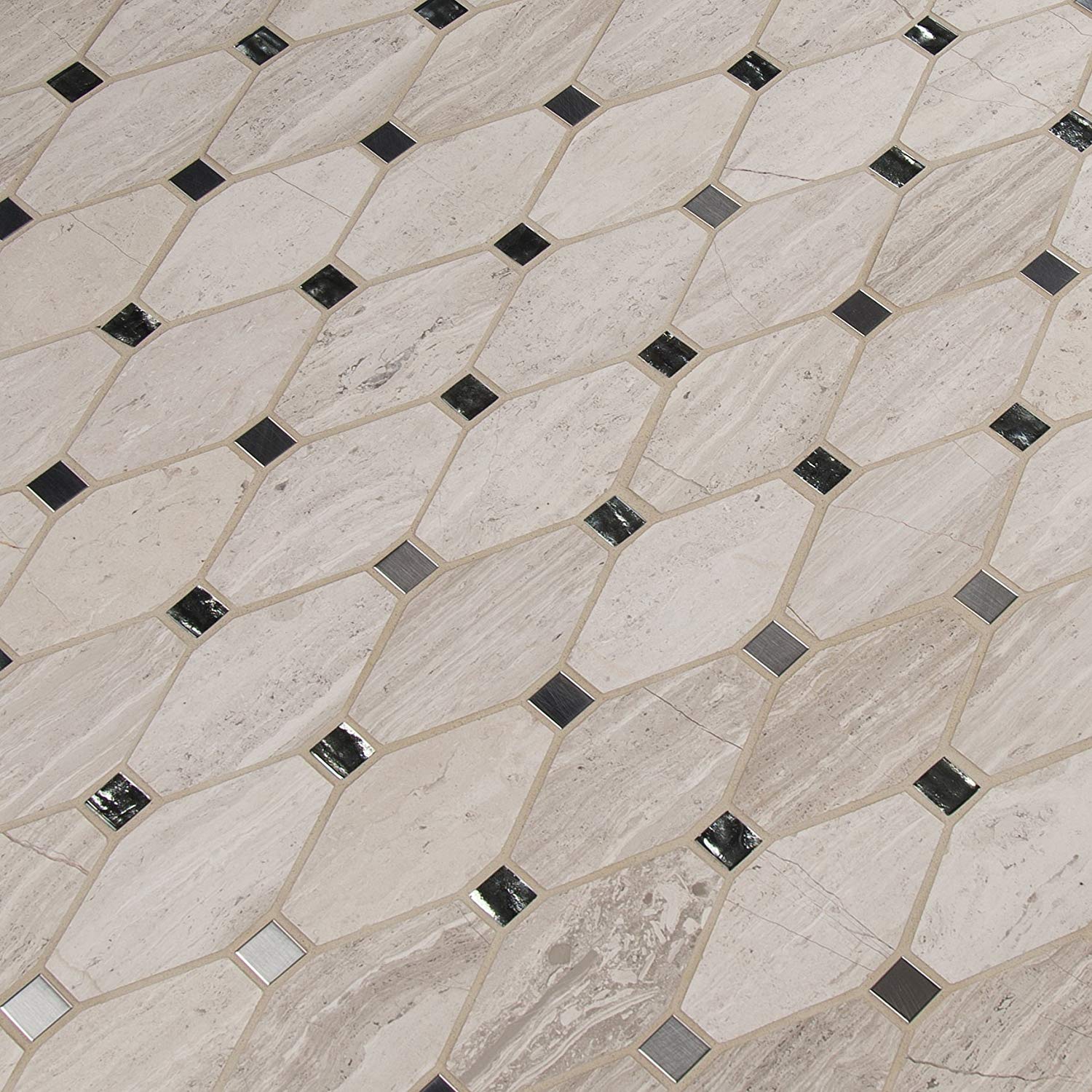 MS International Bayview Elongated Octagon Glass Stone Metal Mosaic Tile - Tenedos